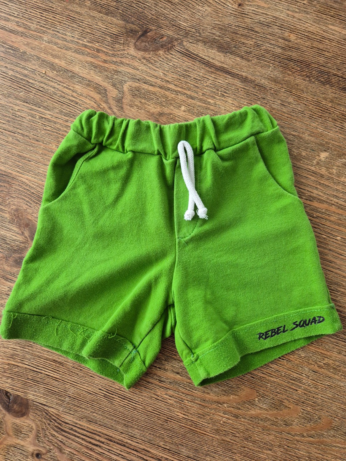 Malo nosene no napriek tomu na zelenych je cierna smuha, vid foto 3 ani neviem od coho, zatial sa to nevypralo a druhe trozku zisla farba nie moc, taky material, este urcite posluzia