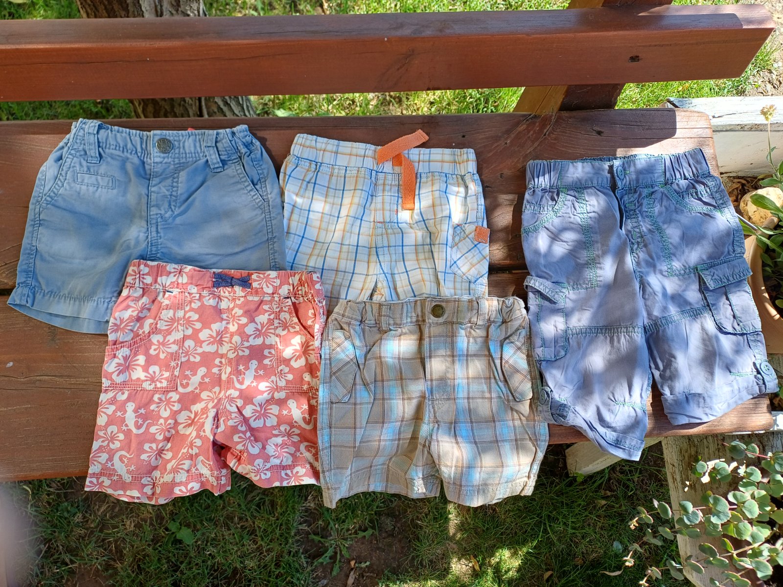 Modré rastúce trakače zn. Manor baby a sivé kraťasy na traky zn. F&F. Obe v. 74/80. Obe oblečené 2x. Cena spolu 10 €
