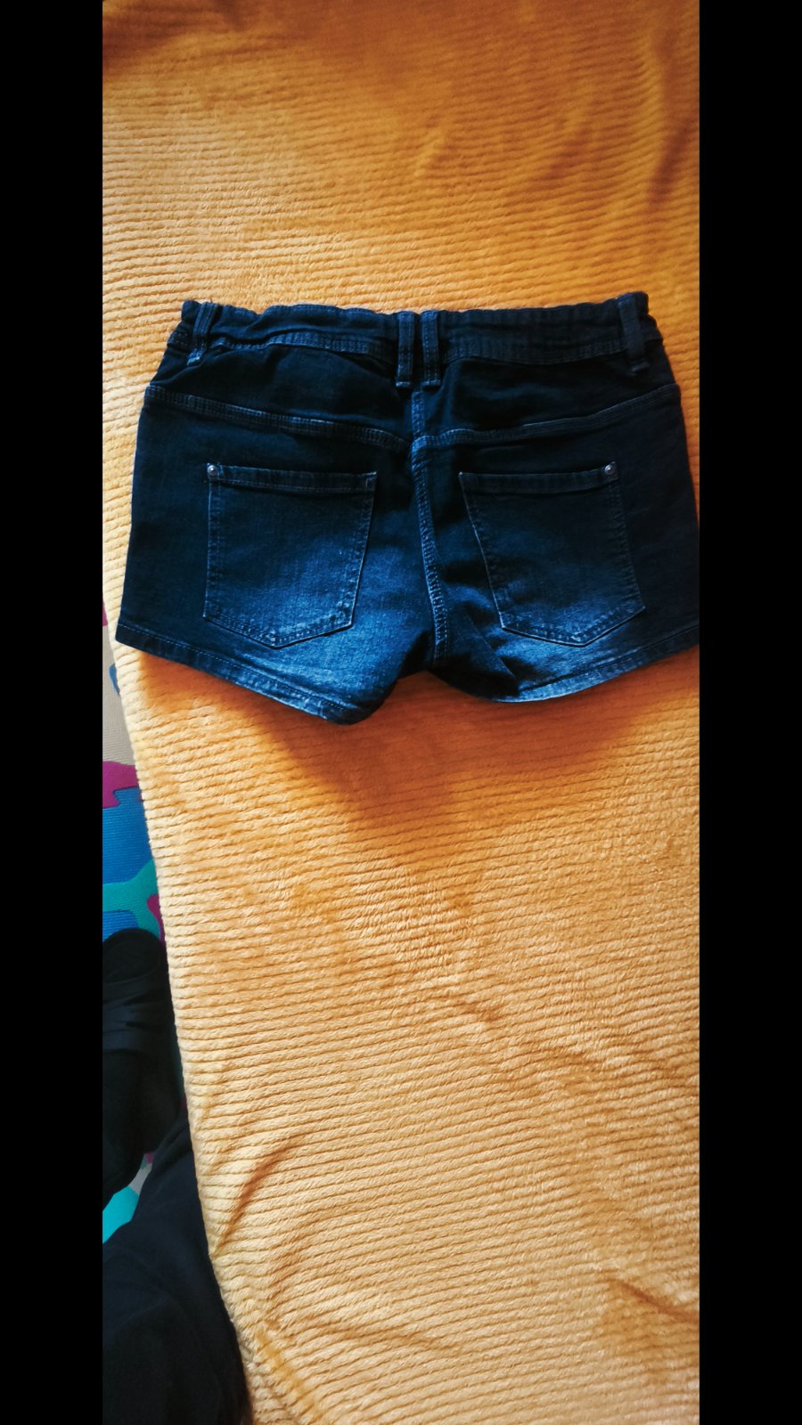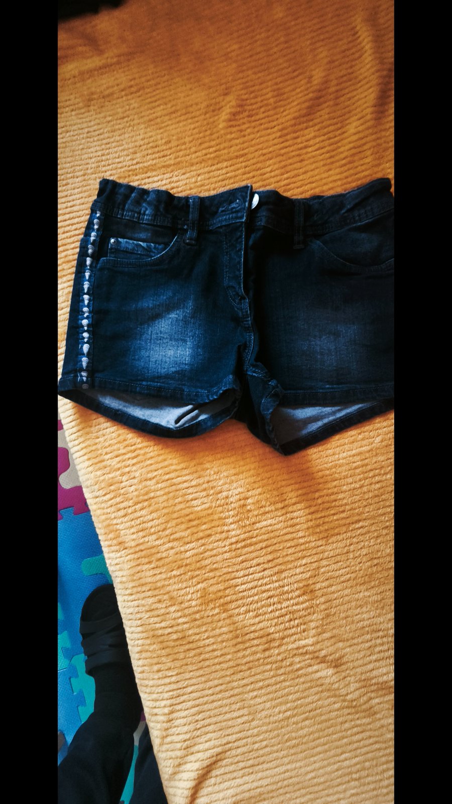 Predám úplne nové, nenosené, ešte s visačkou, riflové Šortky pre dievča, Veľko 152. Na vek 11 – 12 rokov. Cena 4 €