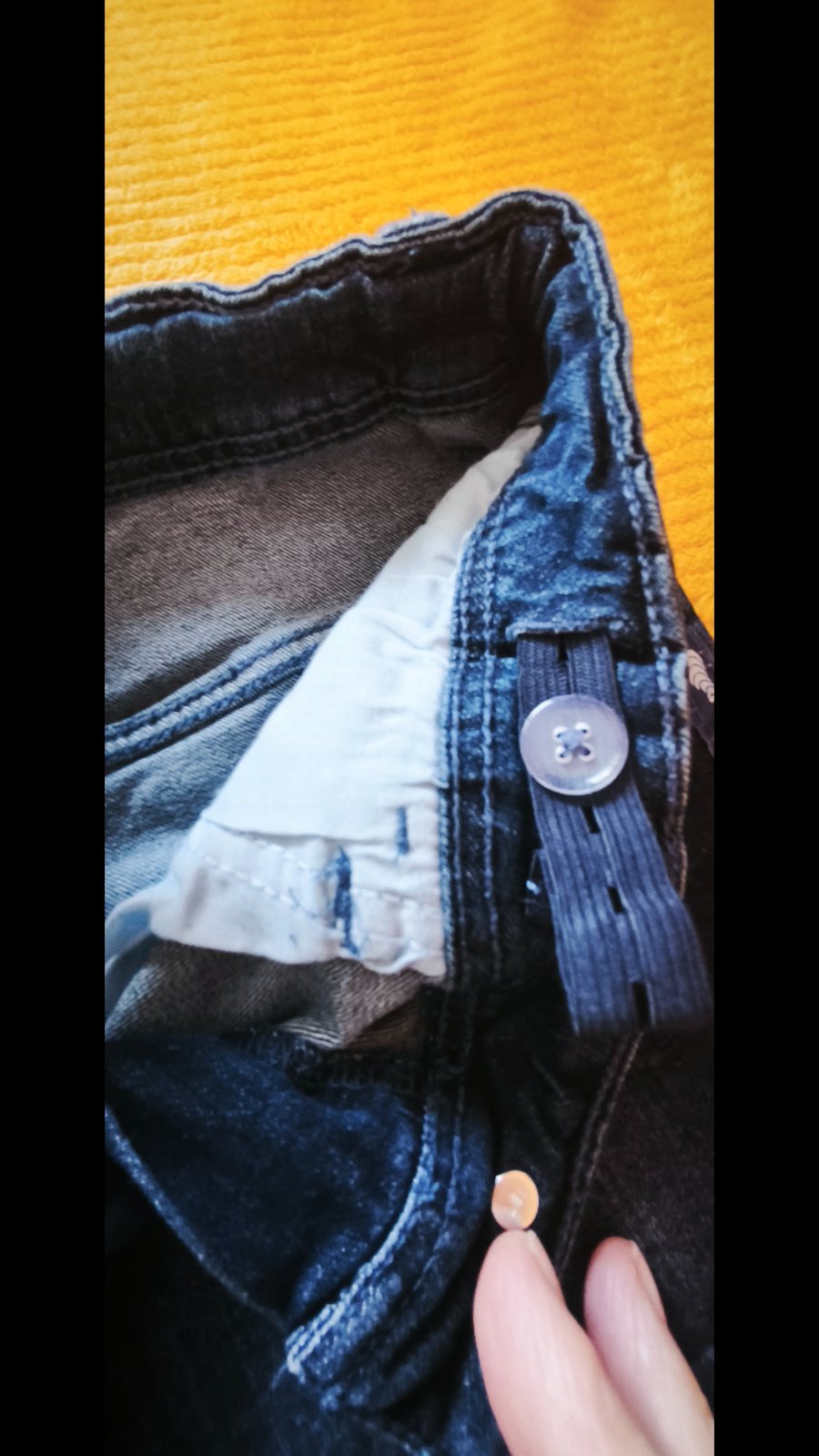 Krátke riflové nohavice , ľahké, mäkký materiál. Na boku sú nájdite lampasy.,v páse sťahujúce na gumu. Použite jednu sezónu, nepoškodené