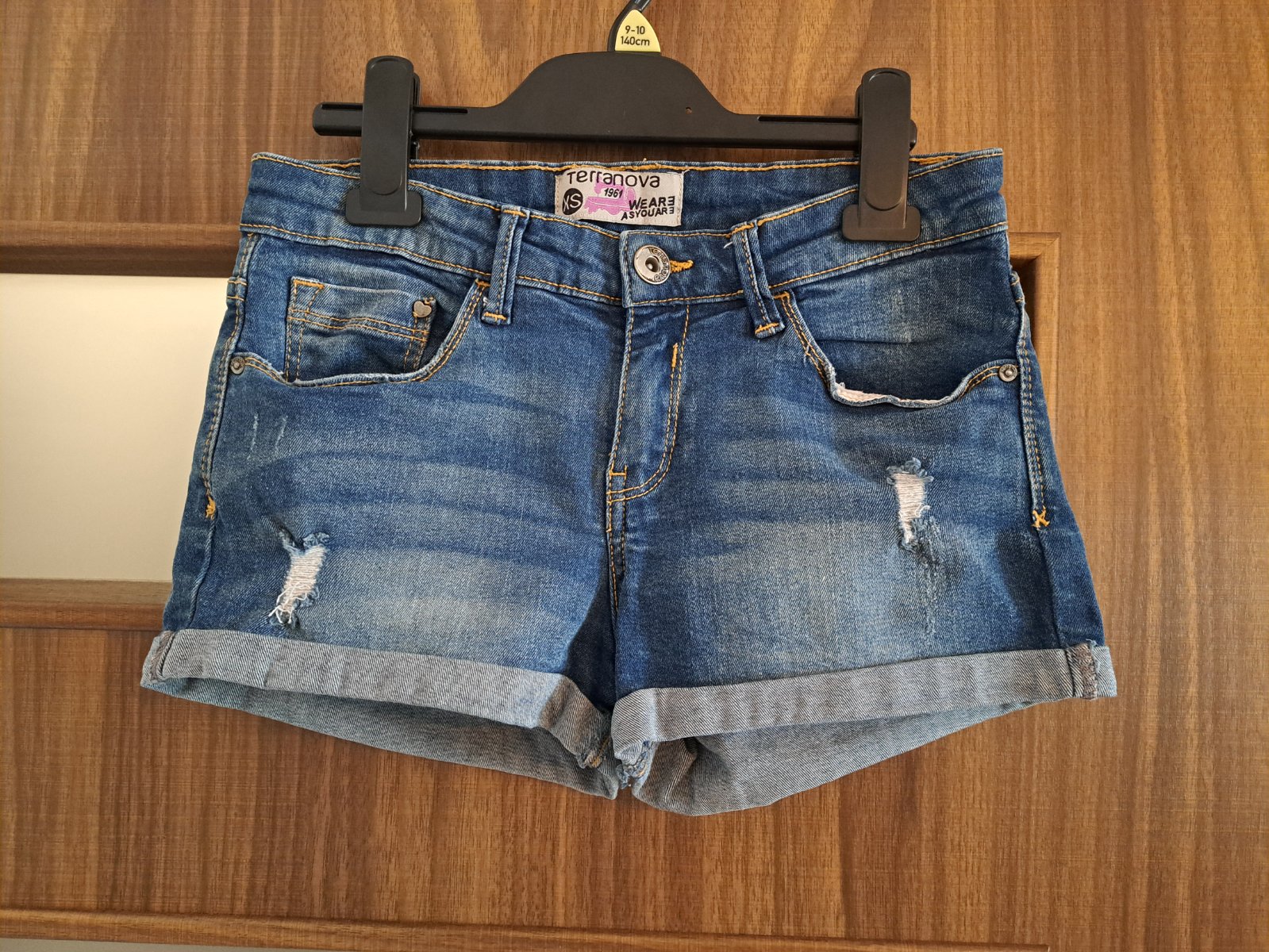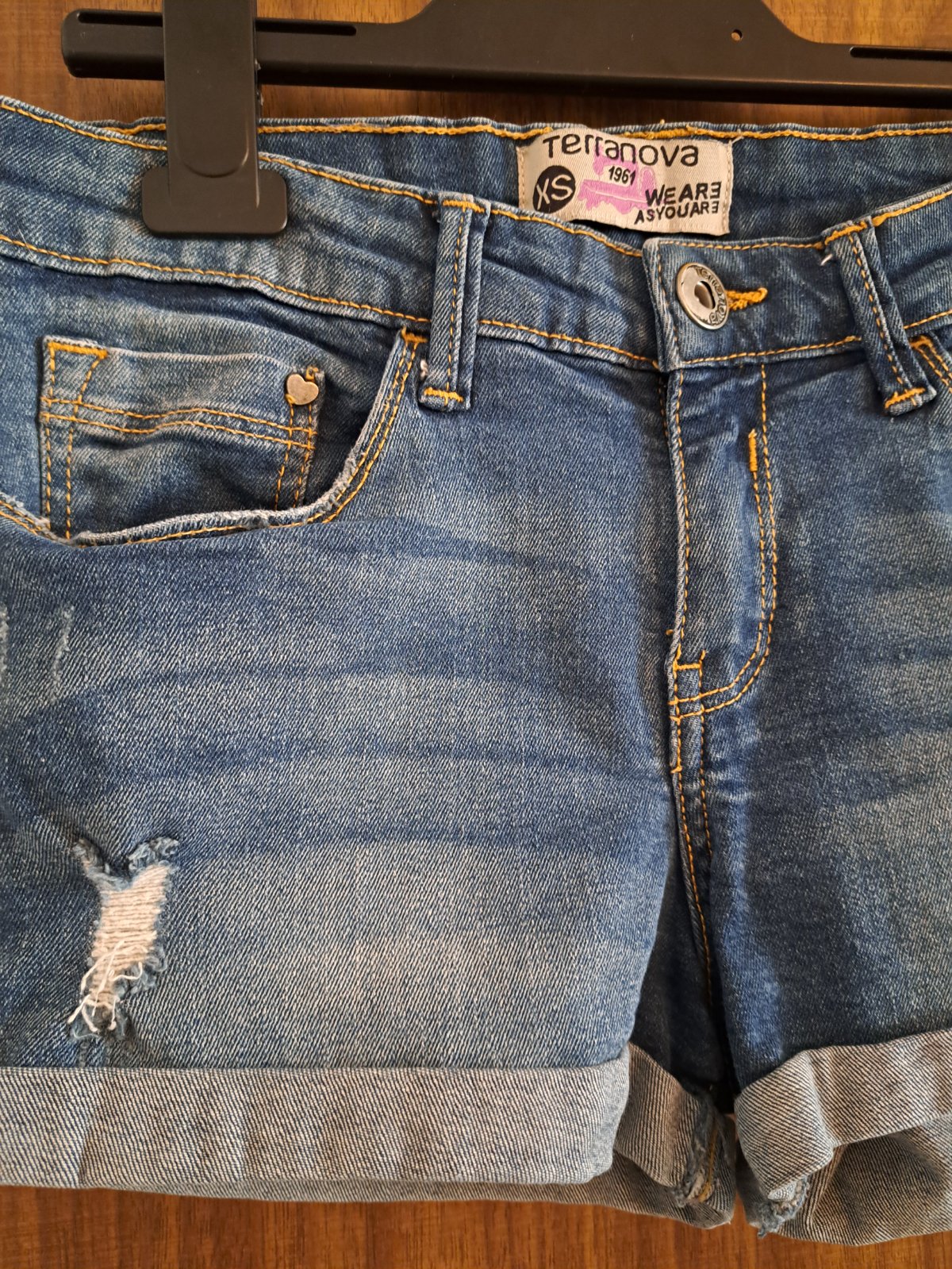 Jeansové kraťasky z mäkkej rifloviny. Veľkosť uvedená xs, sedieť bude na dievčenskú 164/170
