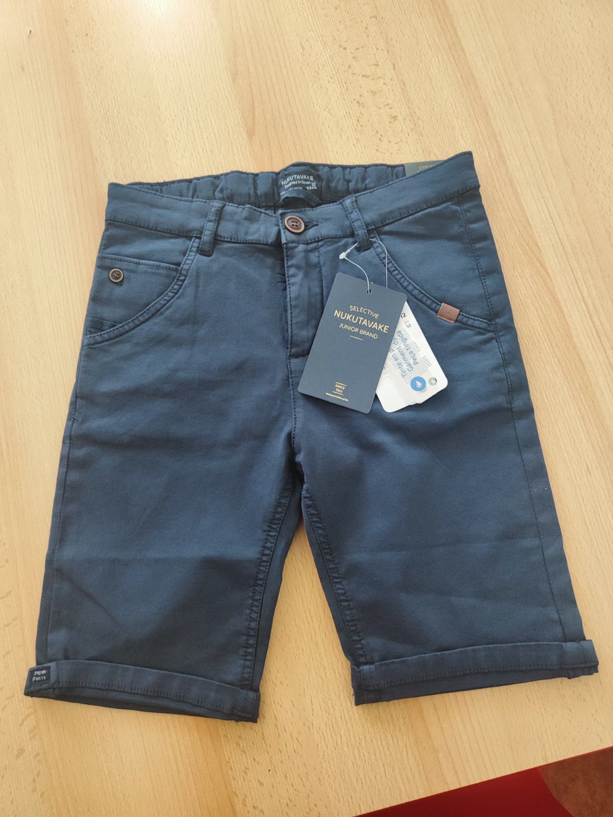 Predám nové krátke nohavice zo strečového materiálu, značka Mayoral Nukutavake je uvedené že je to v.152...môj syn je taká veľkosť ale ich nemohol vôbec zapnúť...je to skôr v.140-146, alebo pre naozaj chudého chlapca...majú sťahovanie v páse, pás v kľude cca 32-33cm., dĺžka 43cm.