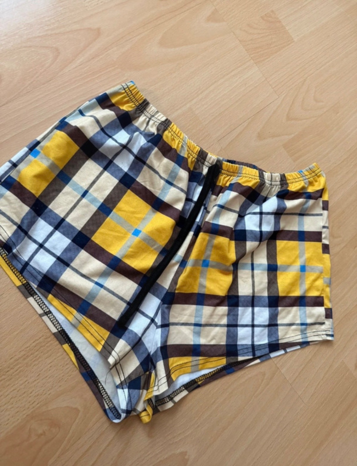 Predám pohodlné pyžamové kraťasy s pekným károvaným vzorom (žltá💛/modrá💙/biela🤍). Majú elastický pás, takže sa dobre prispôsobia a sú veľmi príjemné na spanie aj domáce nosenie ✨
