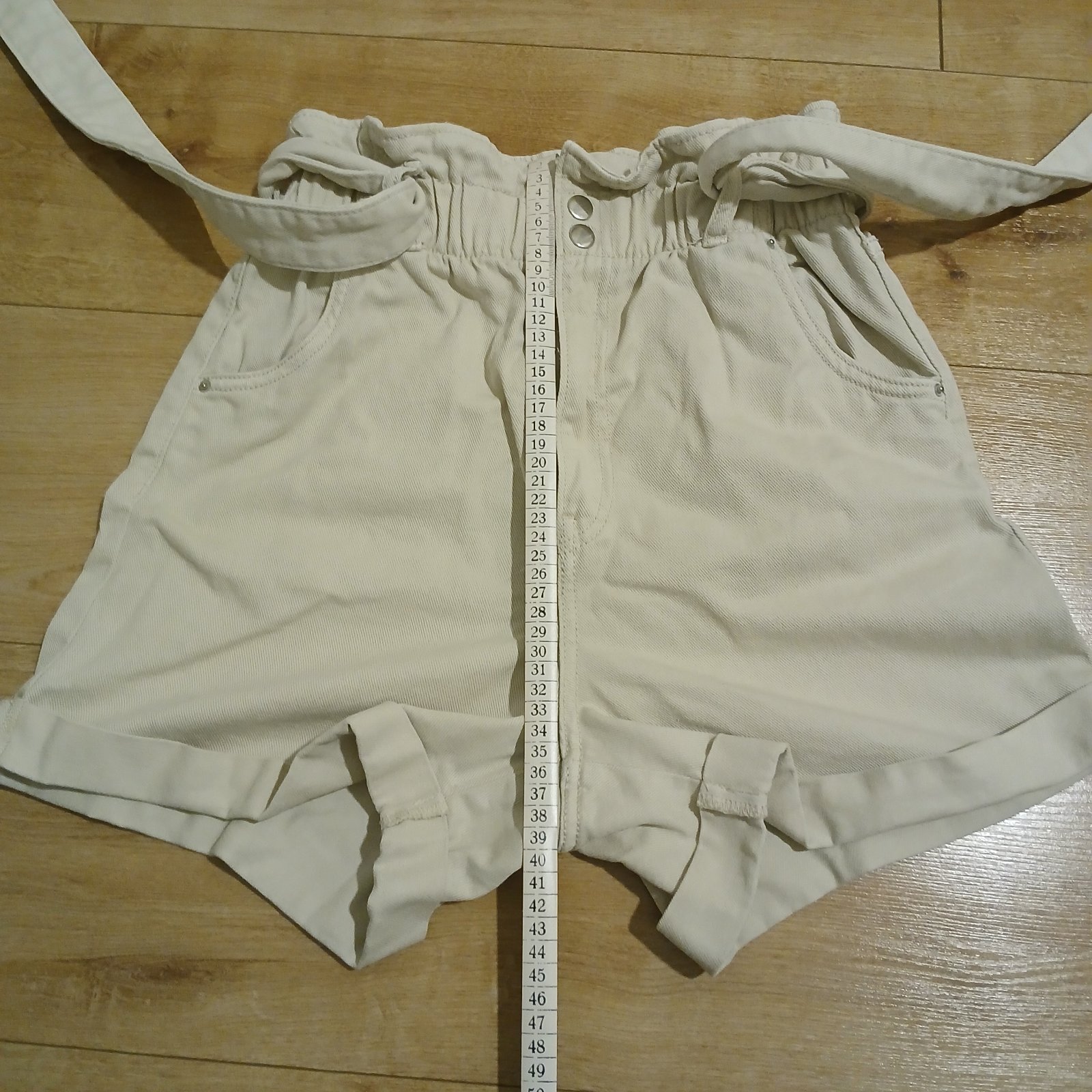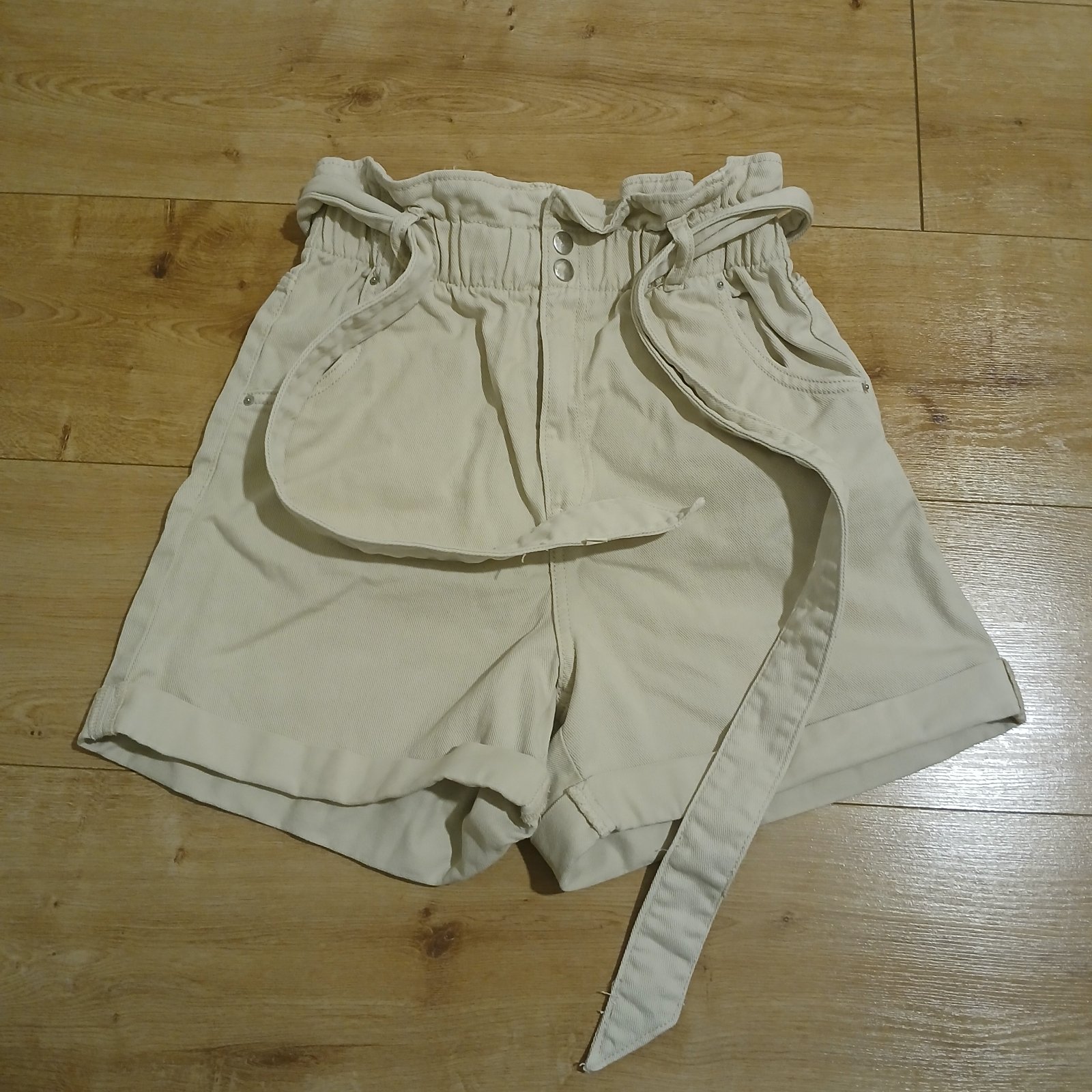 Krémové bavlnené šortky s vysokým pásom