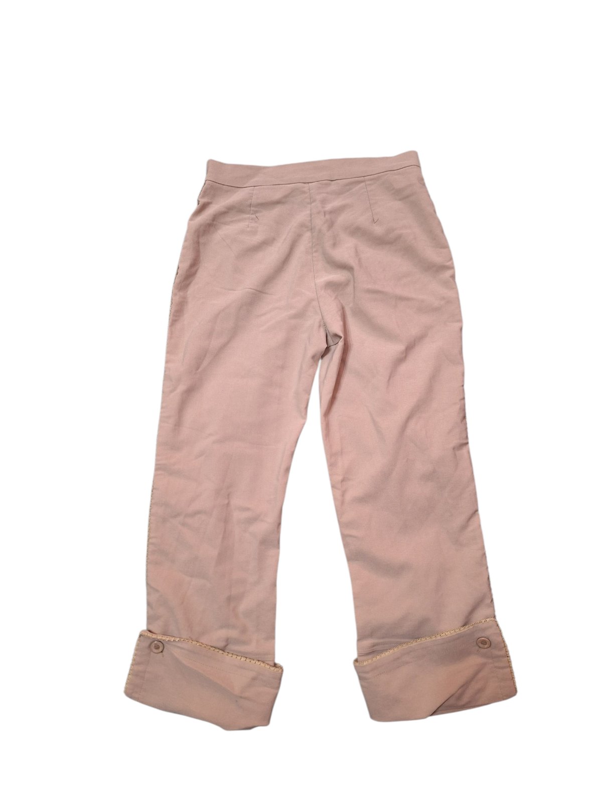 Dámske elastické trištvrťáky značky Newleaf. Zapínanie je vpredu na zips a gombík. Dĺžka je 75cm,obvod pása v kľude je 62cm,natiahnuté 76cm. kód 221