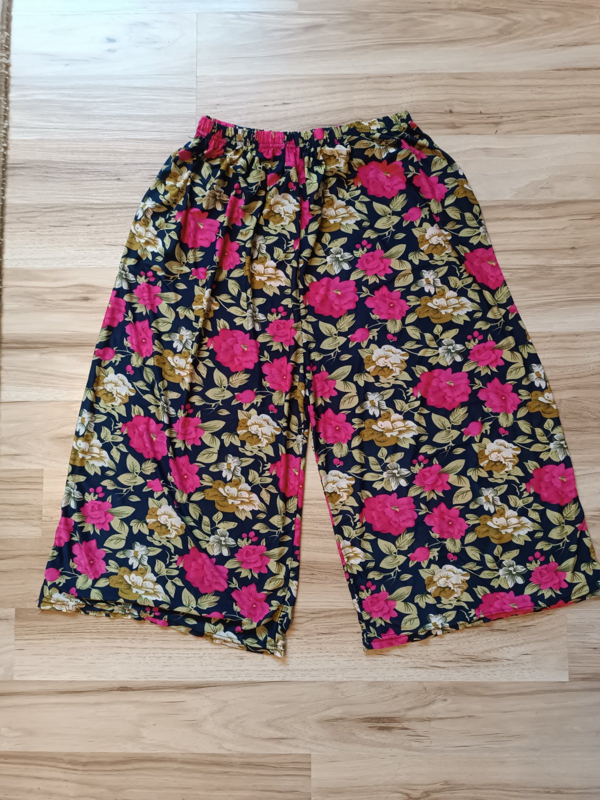 3/4 nohavice, veľkosť 7XL, ale sadnú aj na menšie, v prípade záujmu pošlem rozmery, v páse majú gumu, takže sa prispôsobia, majú vrecká.
