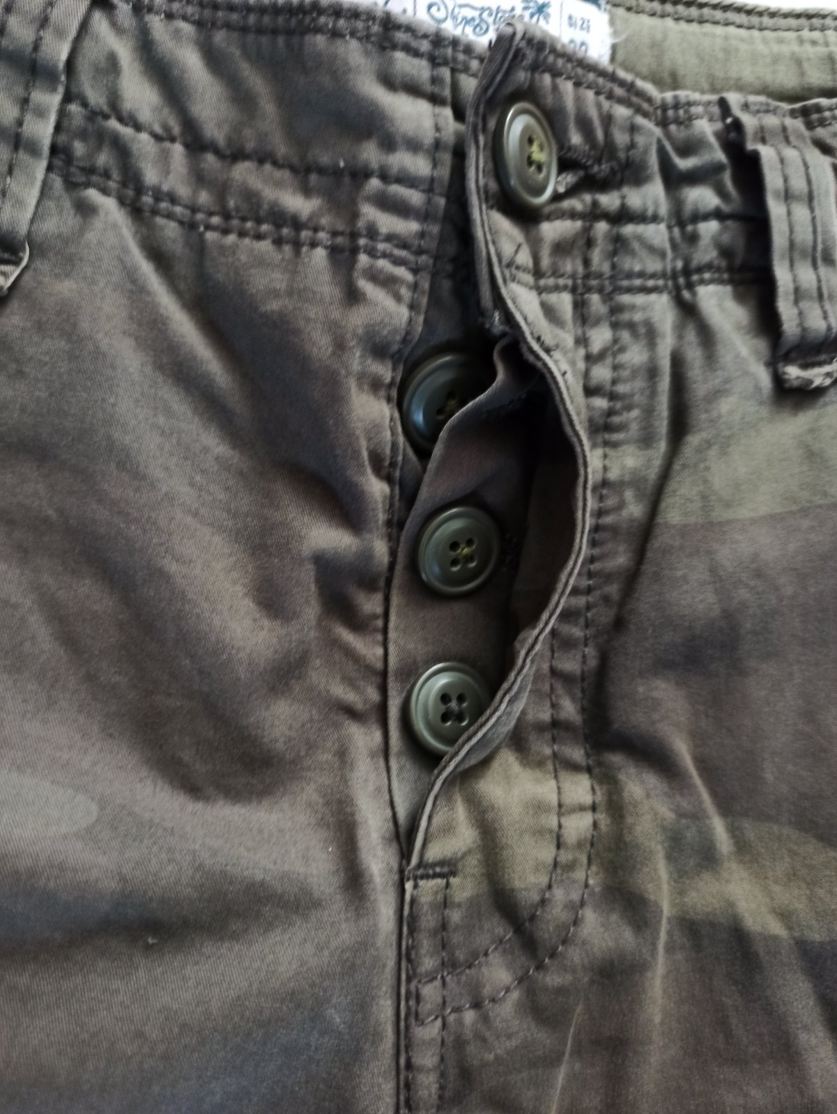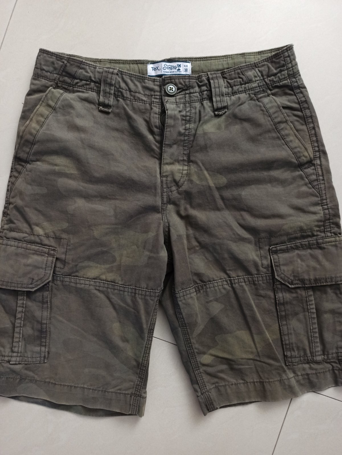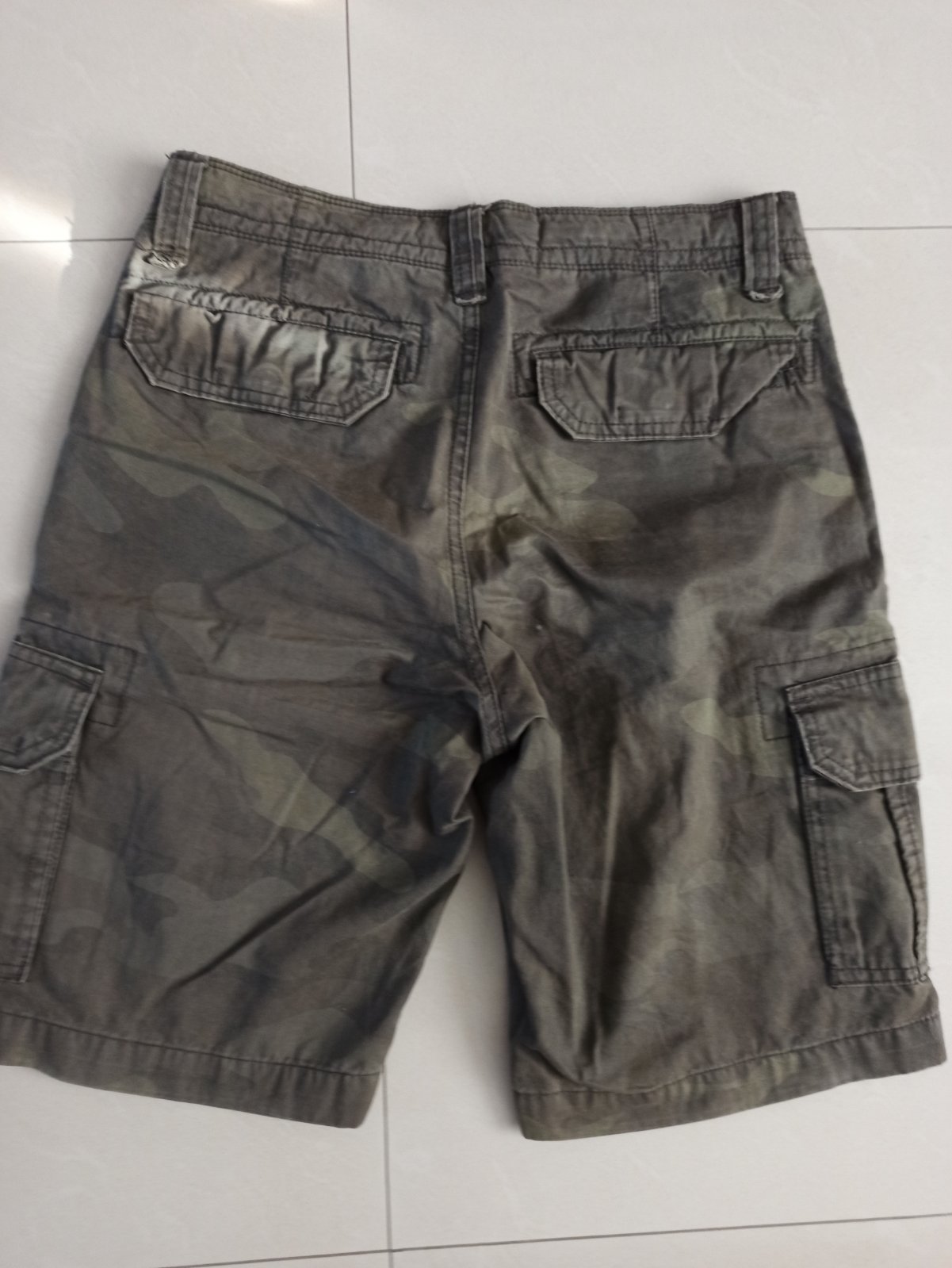 Maskáčový vzor nie je výrazný, na prvý pohľad vyzerajú iba ako zelené. Veľkosť je uvedená 38, ale je to na chlapca cca veľkosť 176 . V prípade záujmu premeriam.