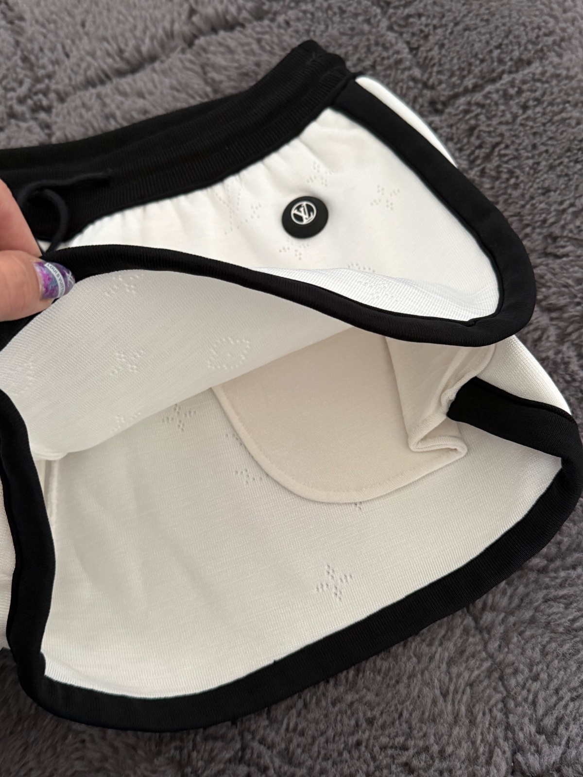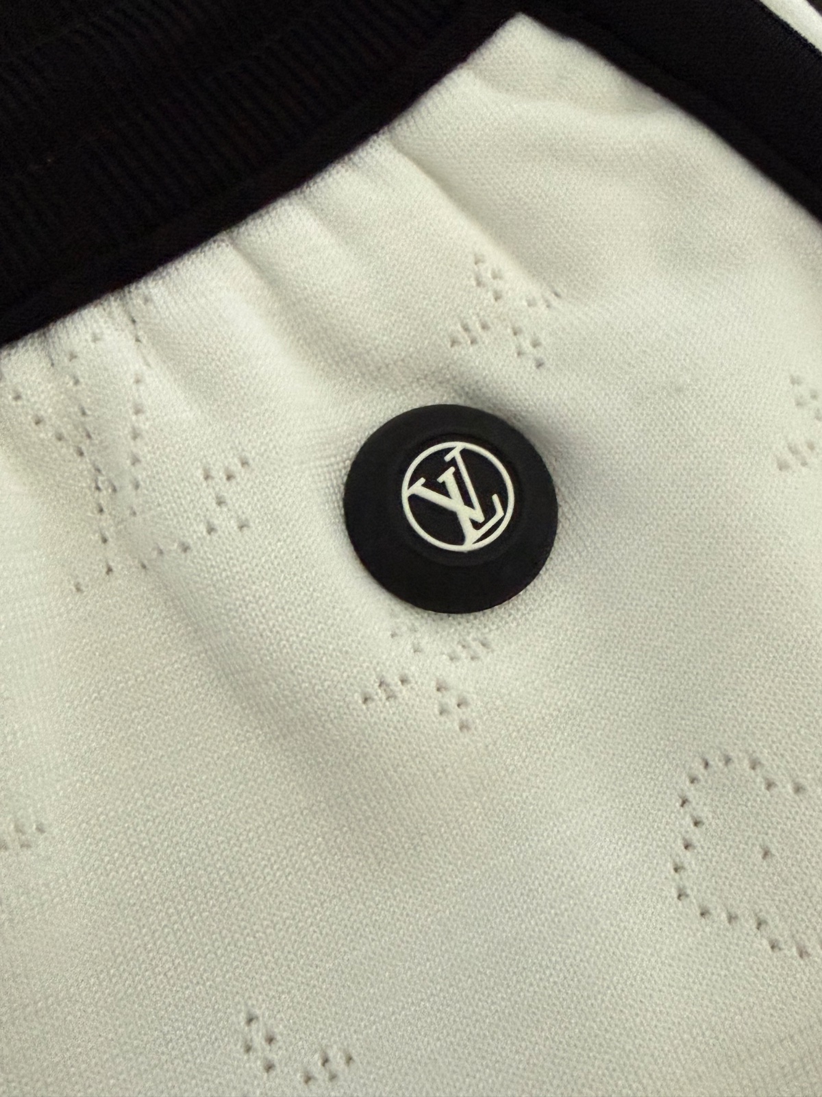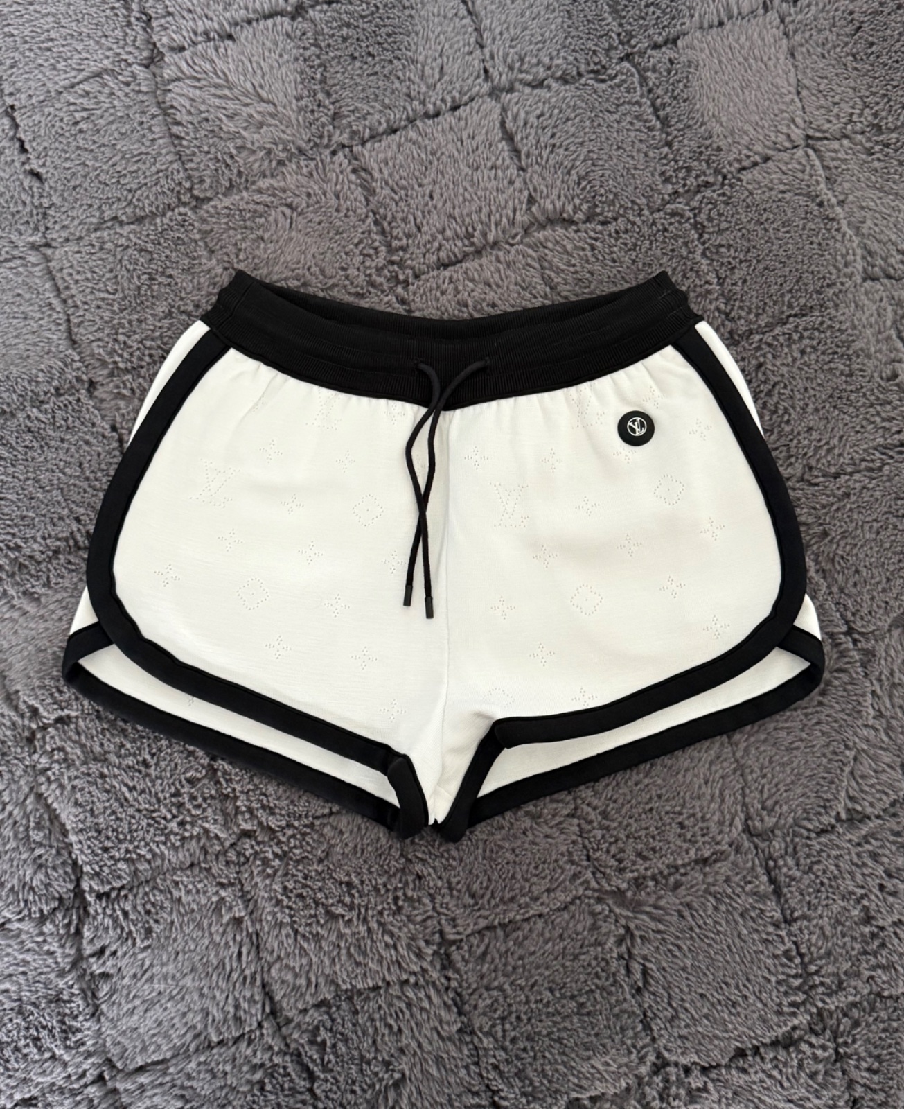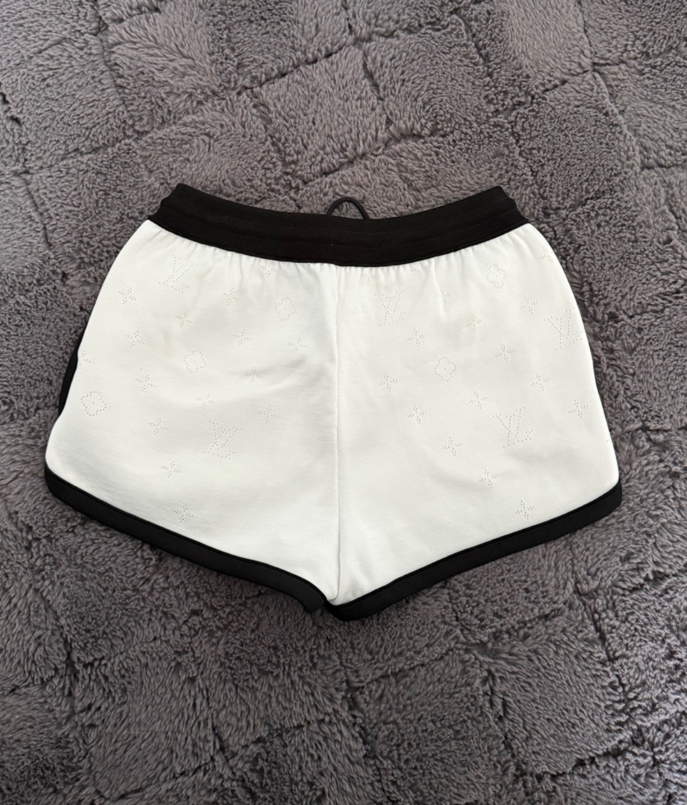 Luxusné a nádherne riešené bielo-čierne šortky Louis Vuitton. Šortky majú celeplošný dierkovaný monogram, na ľavej strave čierne 3D logo. Po bokoch vrecká. Top stav, ako nové, oblečené asi 2-krát. Velkosť XS. Oblečie aj S.