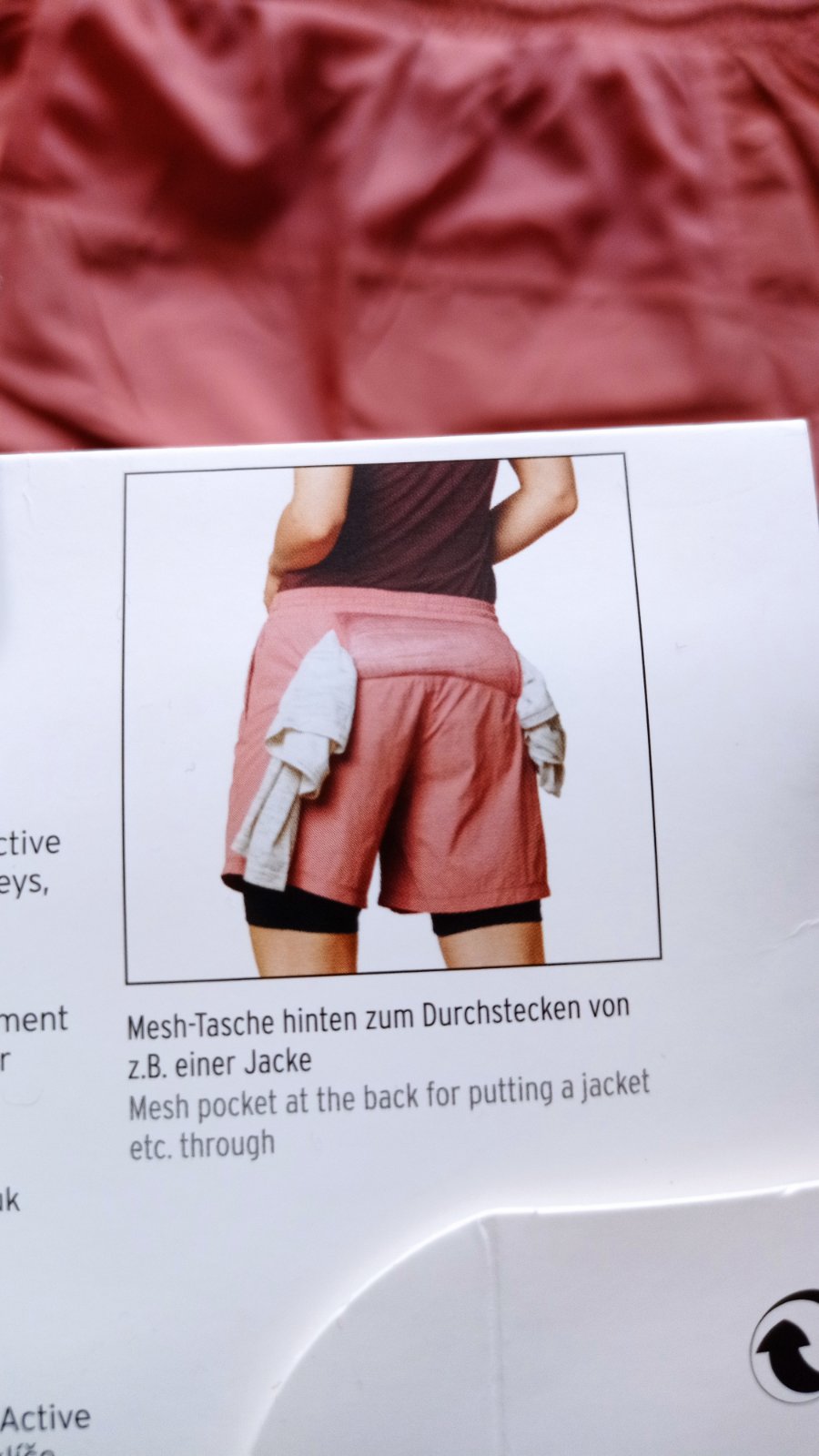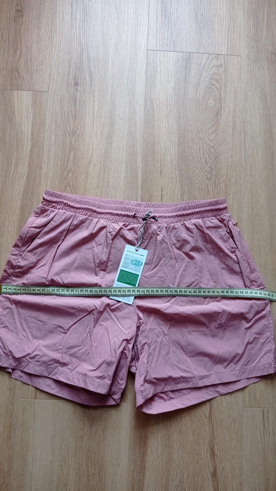Nenosené funkčné šortky, z ľahkého rýcloschnúceho materiálu, sekla som sa vo veľkosti, sú mi veľké. Veľkosť je 40/42. Vpredu 1x vrecko a 1x dvojvrecko (skrytý zips), vzadu sieťovina na odloženie napr trička - viď foto. Guma v pase na nastavenie, nové zabalené, odporúčam.