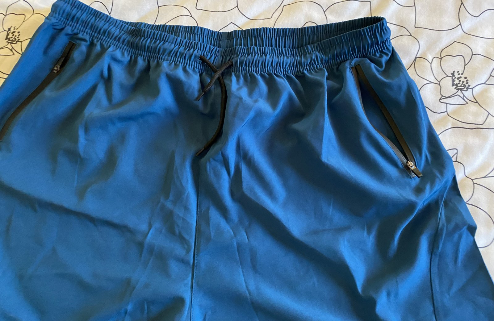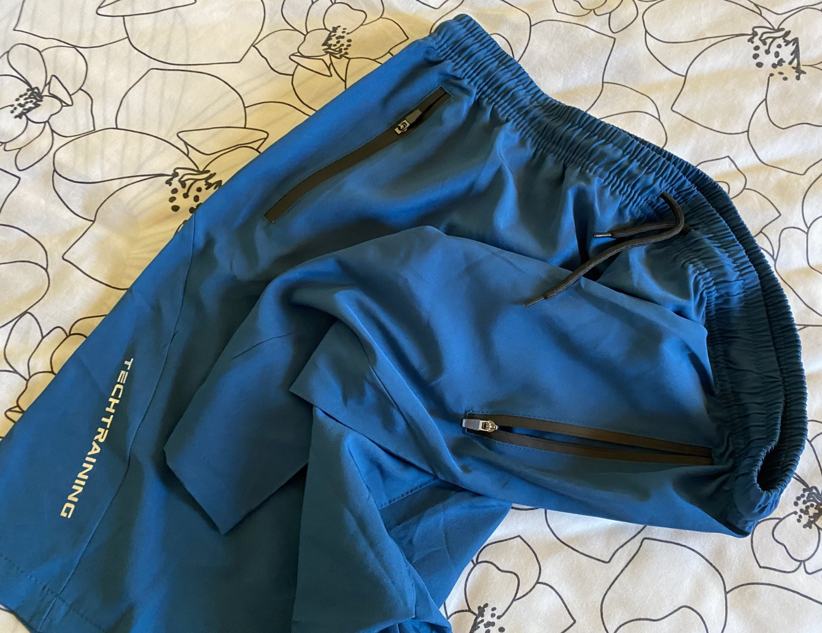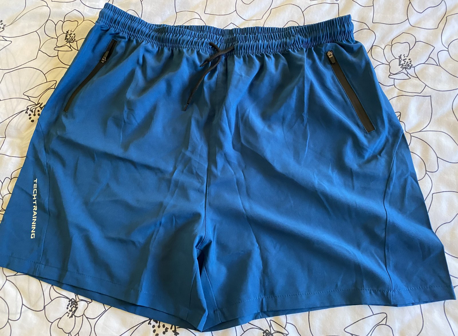 Pánske športové šortky TECHTRAINING v. 4XL, nenosené, iba opraté, kupované bez skúšania - nám príliš veľké, farba modro-zelená - foto skresľuje, materiál 95% polyester, 5% elastan - rýchloschnúci materiál, vpredu vrecká zapínanie na zips, v páse guma + šnúrka na sťahovanie. Miery: pás: 45-55cmx2, bočná dĺžka: 47cm, predný sed: 38c, zadný sed: 48cm, šírka stehna v mieste sedu: 40cmx2.