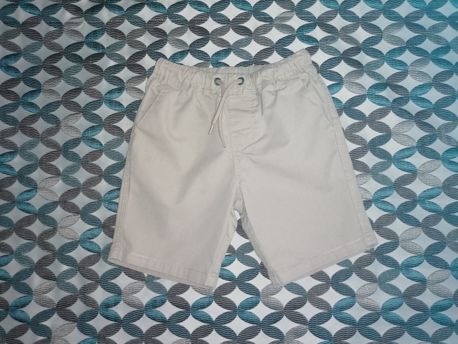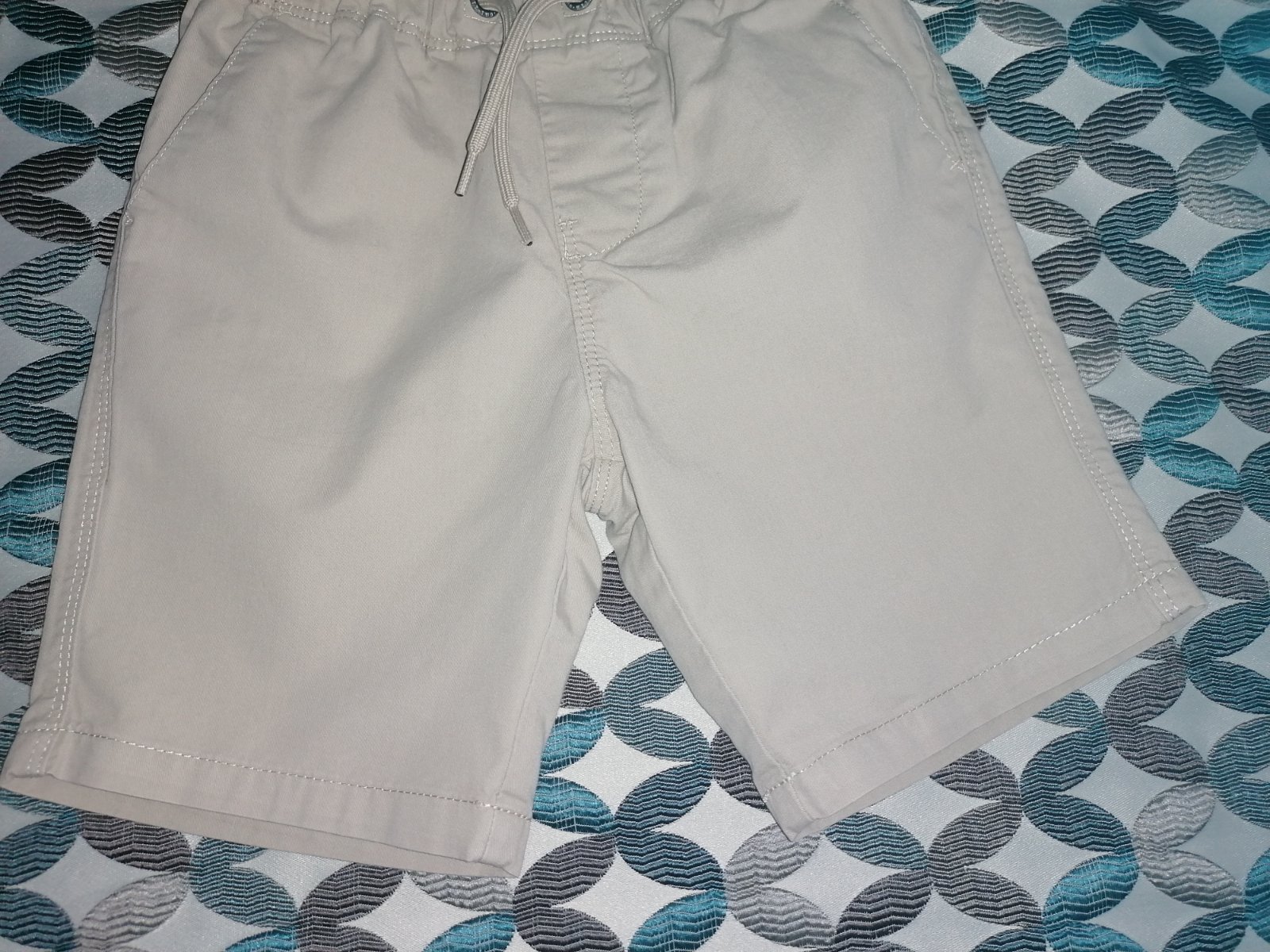 Kraťasy zn. Next veľ. 122, 100% bavlna, pás na gumu + šnúrky na stiahnutie, vpredu aj vzadu dve vrecká, farba béžová.