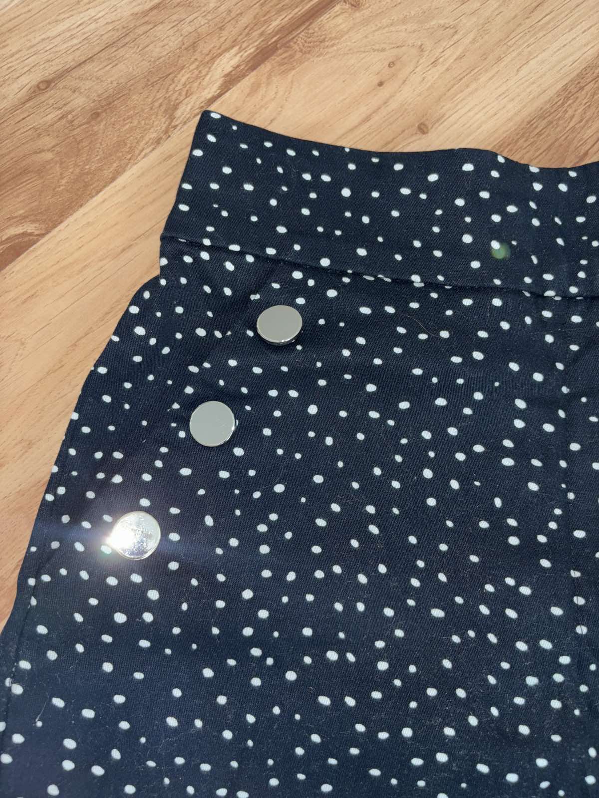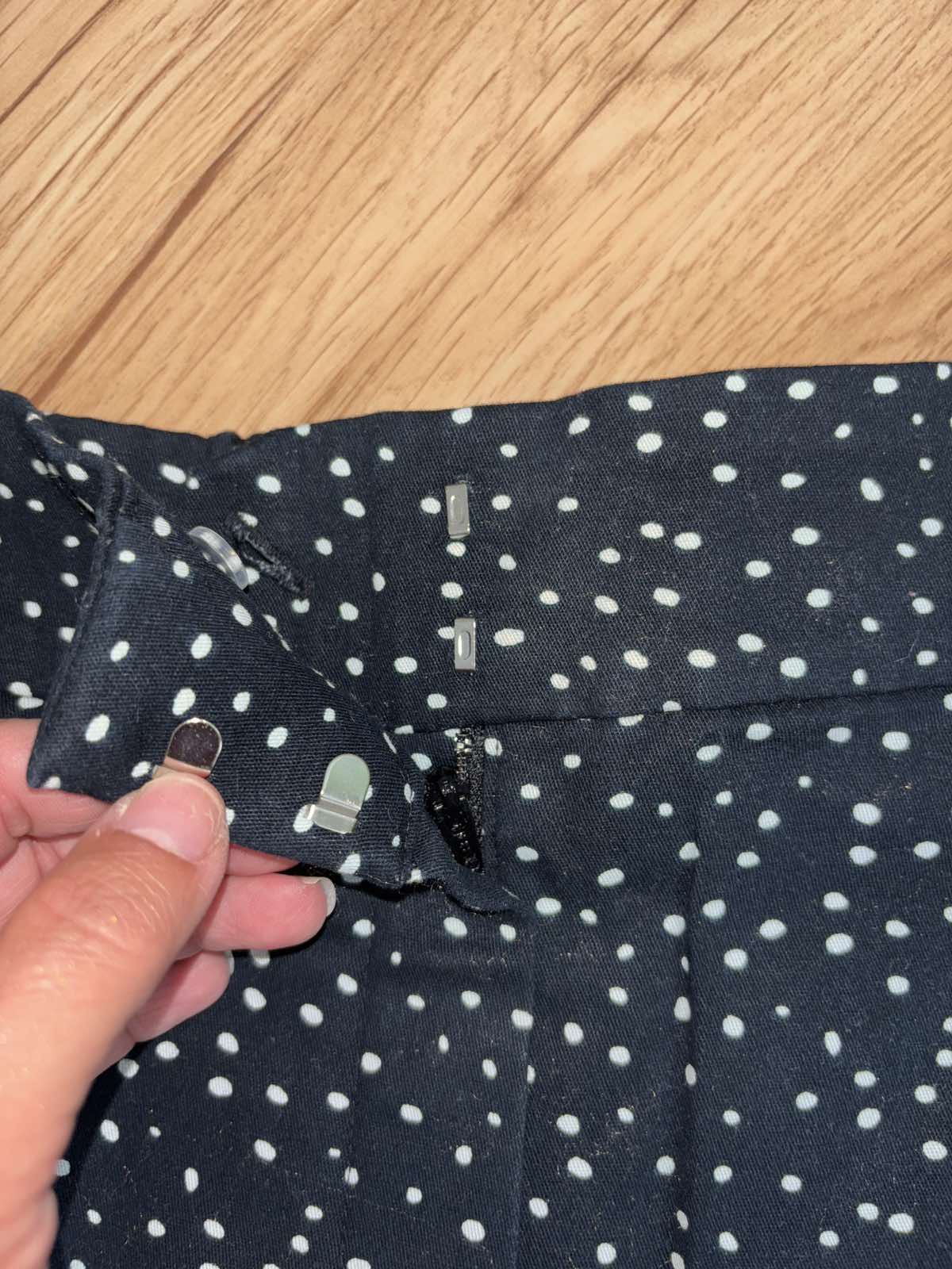 Bez známok nosenia, vysoký pás, vzadu pružná guma, celoročne nositelne, veľkosť 36,pás 35-40 x 2 cm, predný sed 31 cm