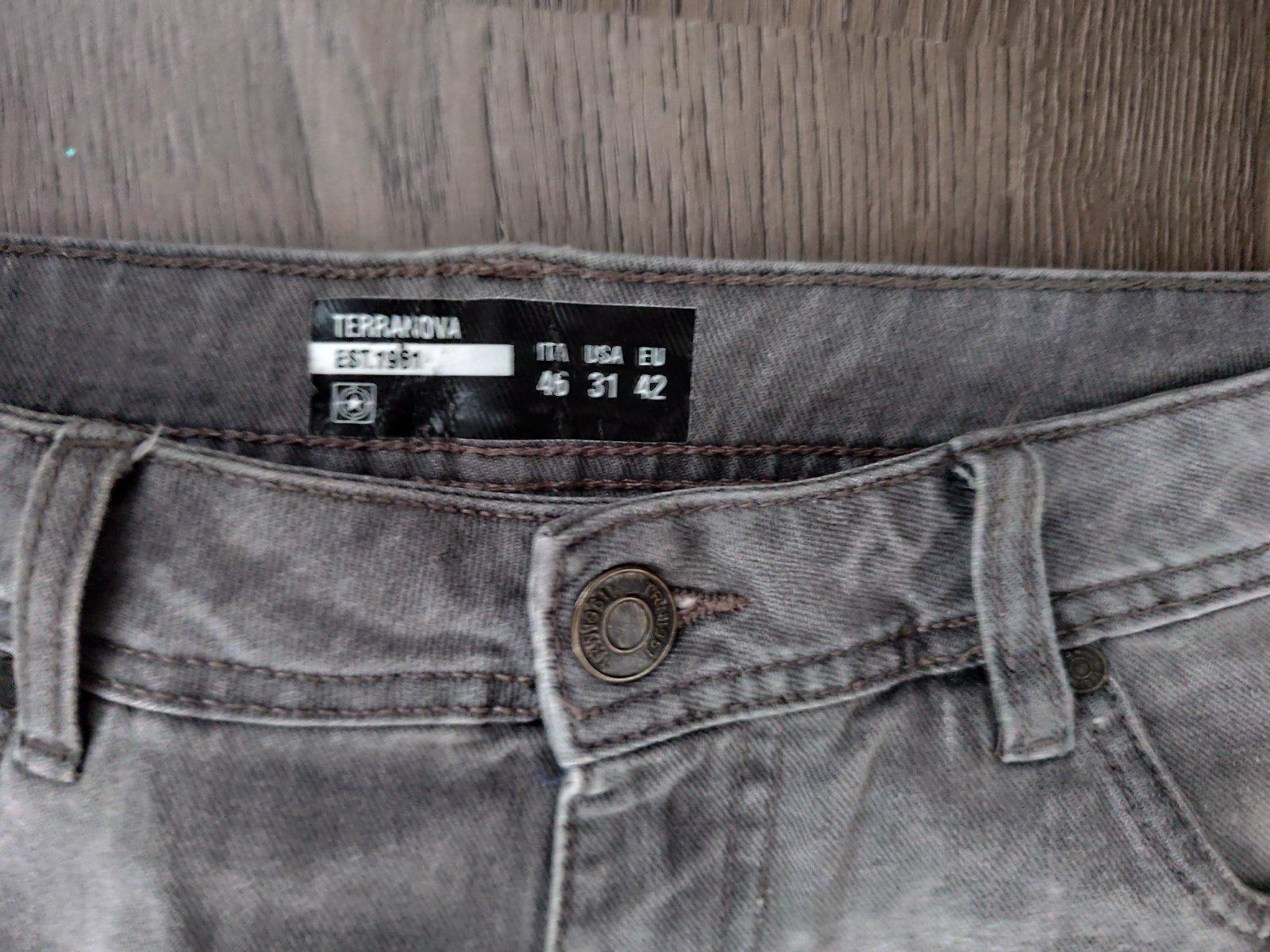 Vo veľmi peknom stave, pár krát oblečené. Na zadku veľmi slabo viditeľné bodky, myslím, že pôjdu oprať. Pri nosení určite nebude vidno