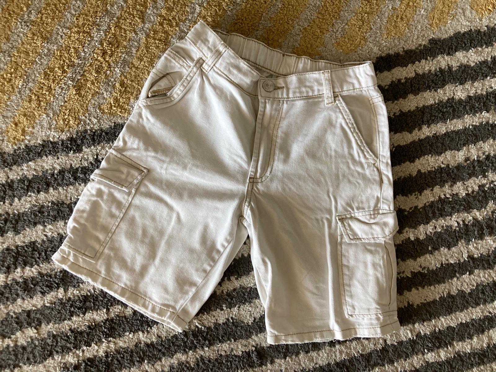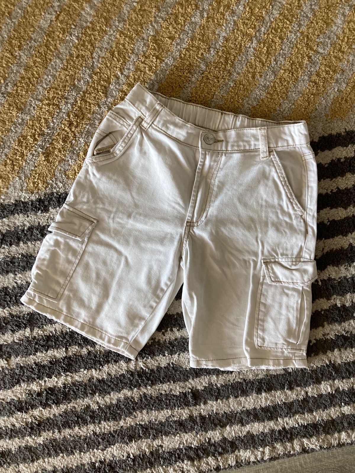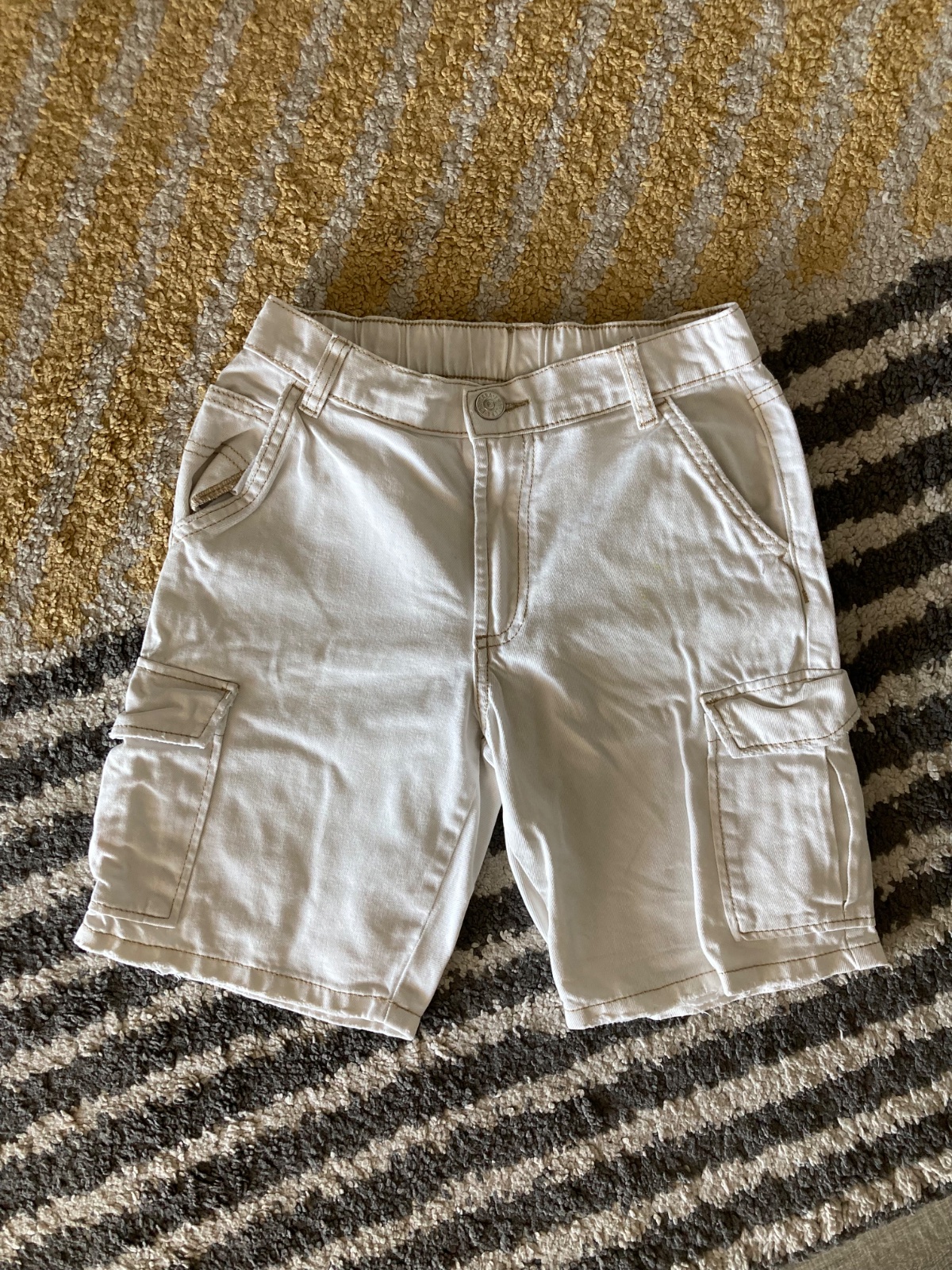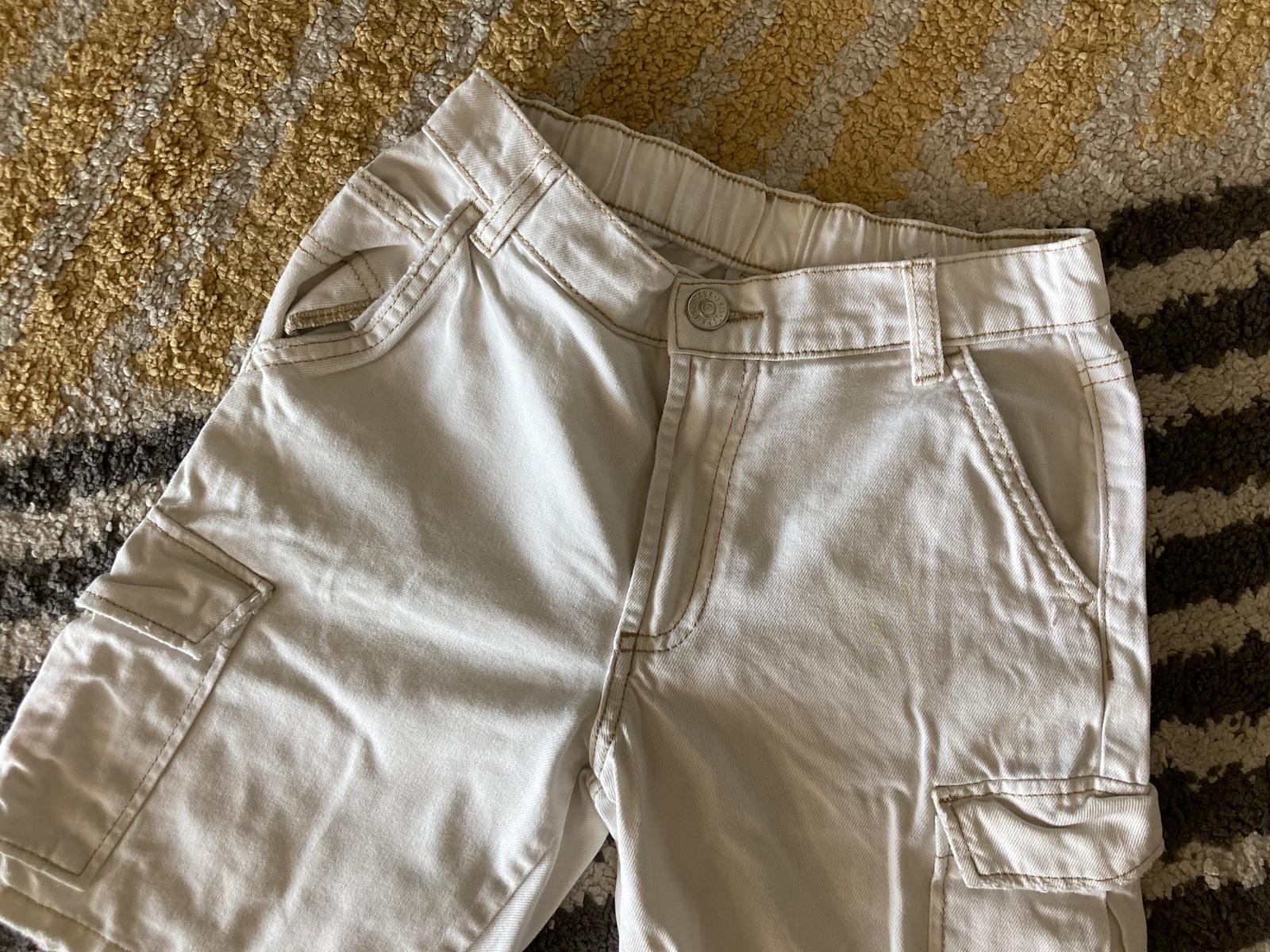 Veľmi pekný stav, krásne, málo nosené, bez poškodení, nájde sa niekoľko fliačkov neprala som špeciálne, vzadu na páse na gumu