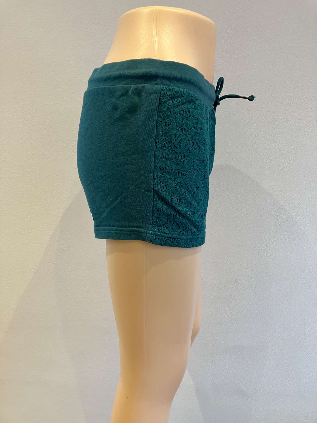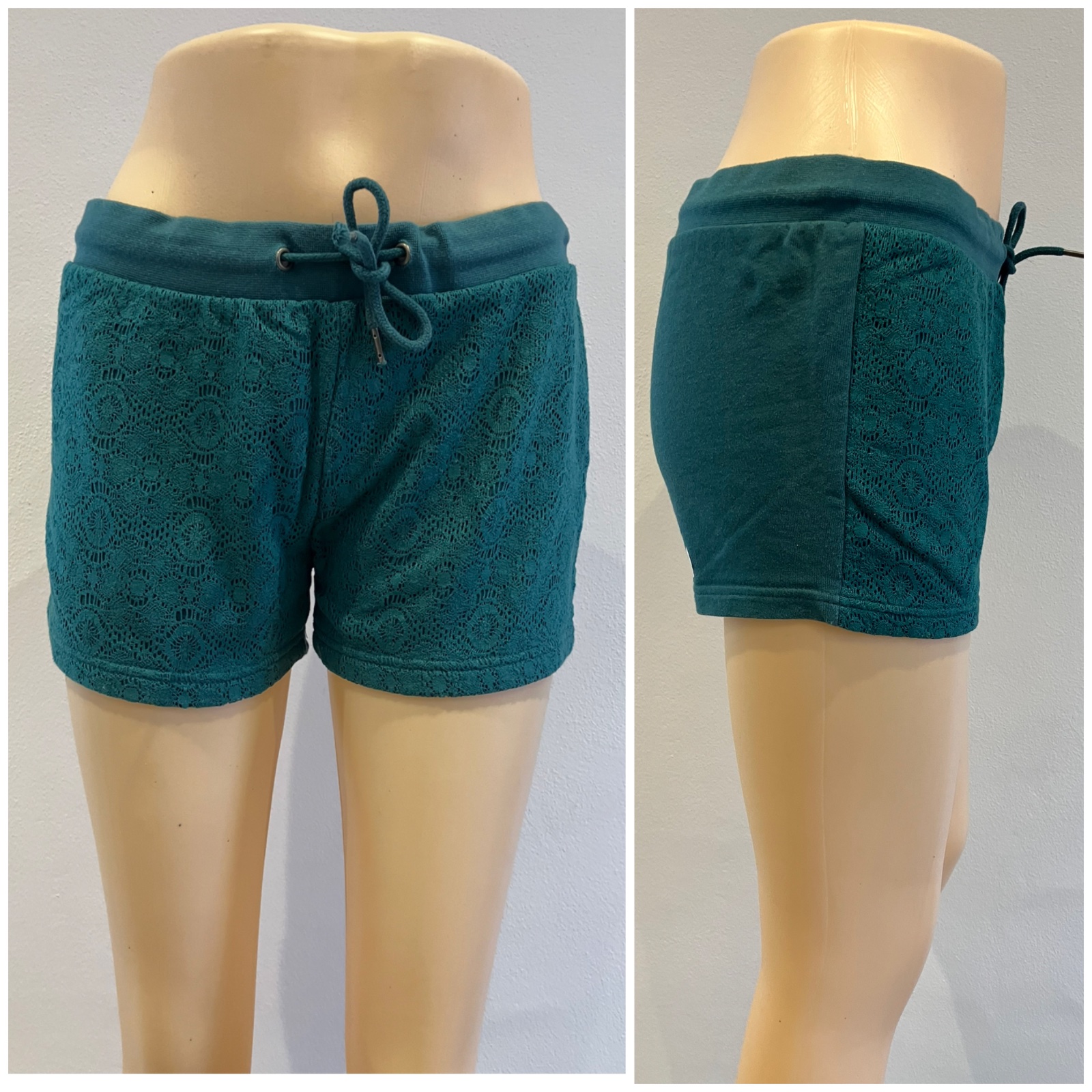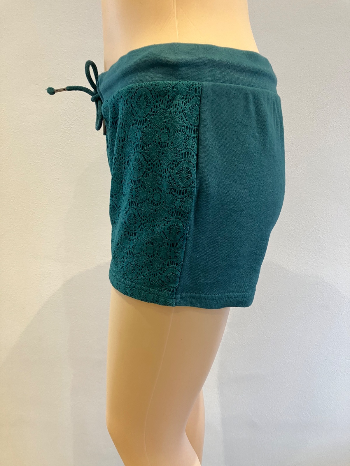 Dámske teplákové šortky s čipkou, so zaväzovaním. Pás na gumu. Elastické. Materiál 80%bavlna 20%polyamid.