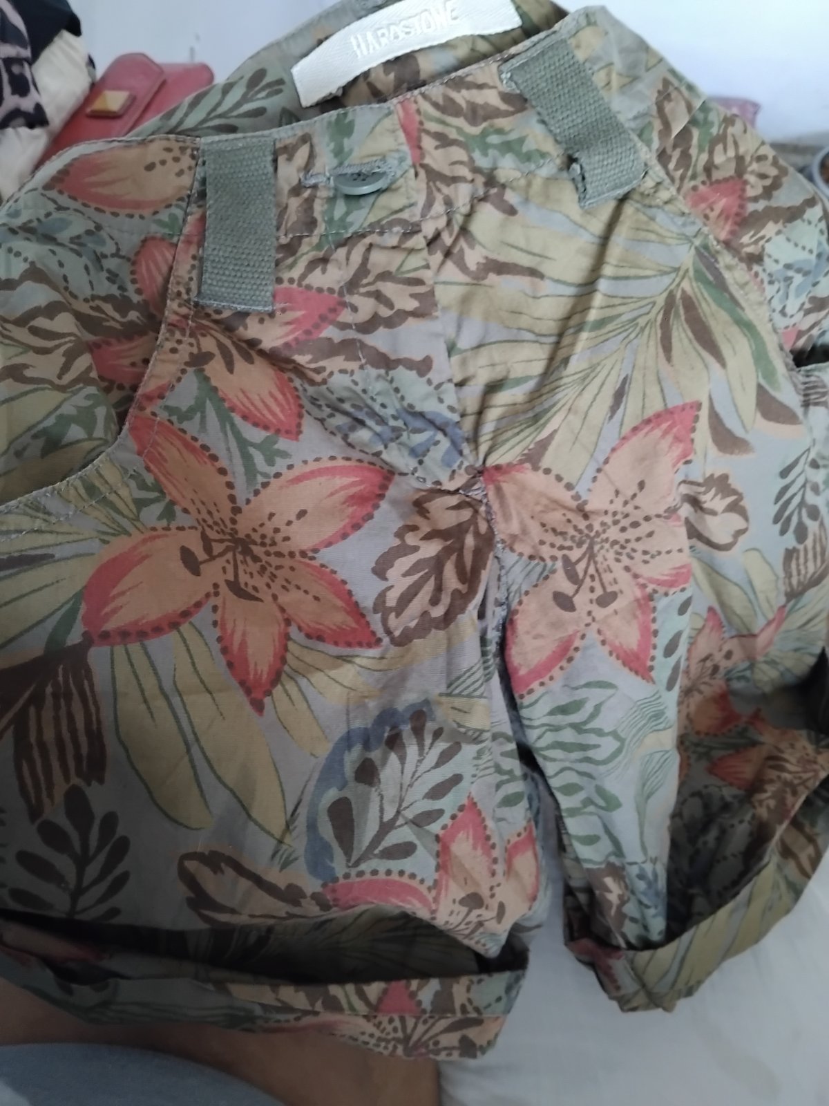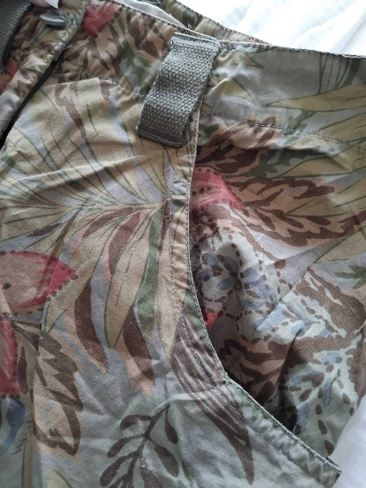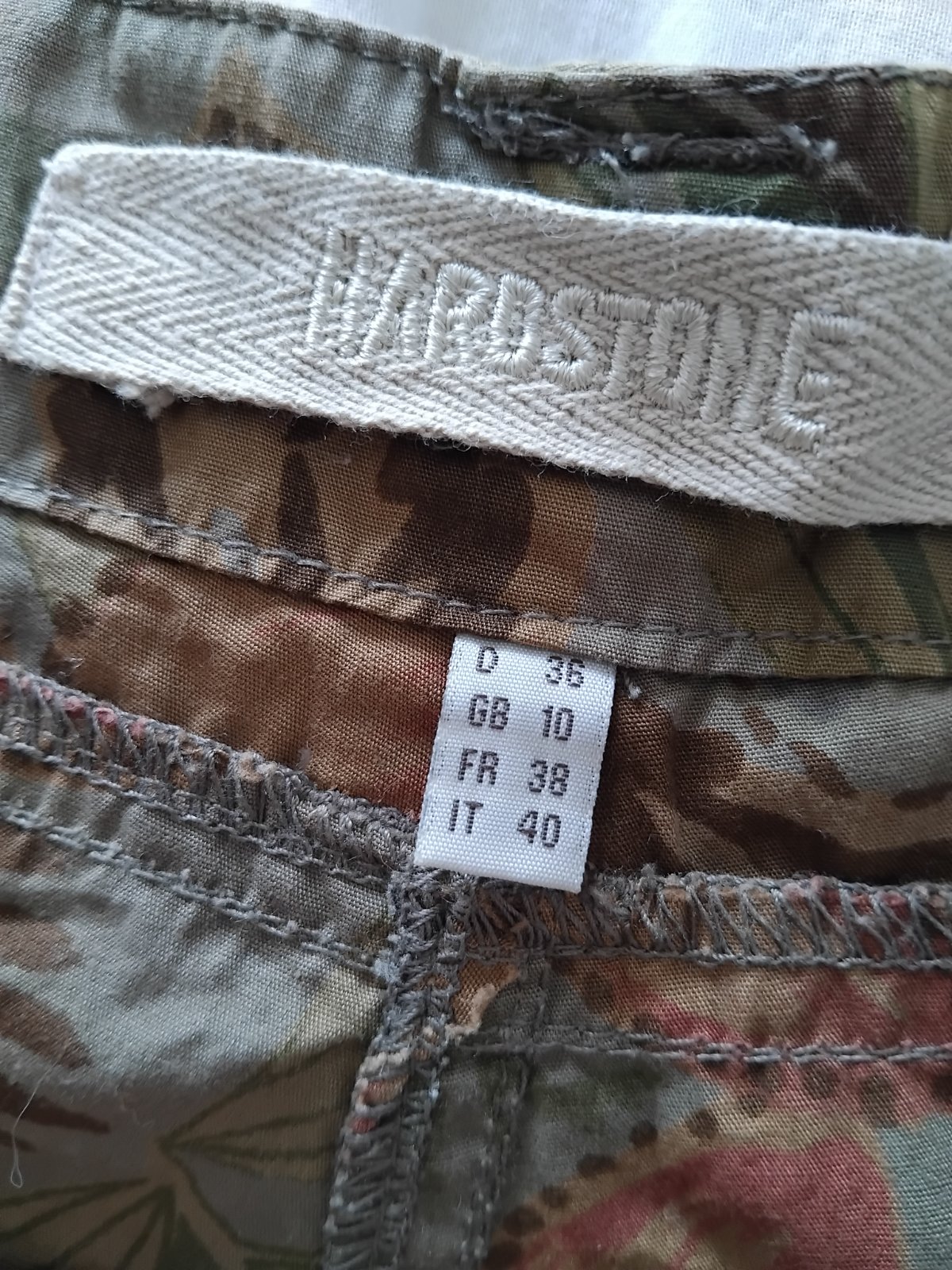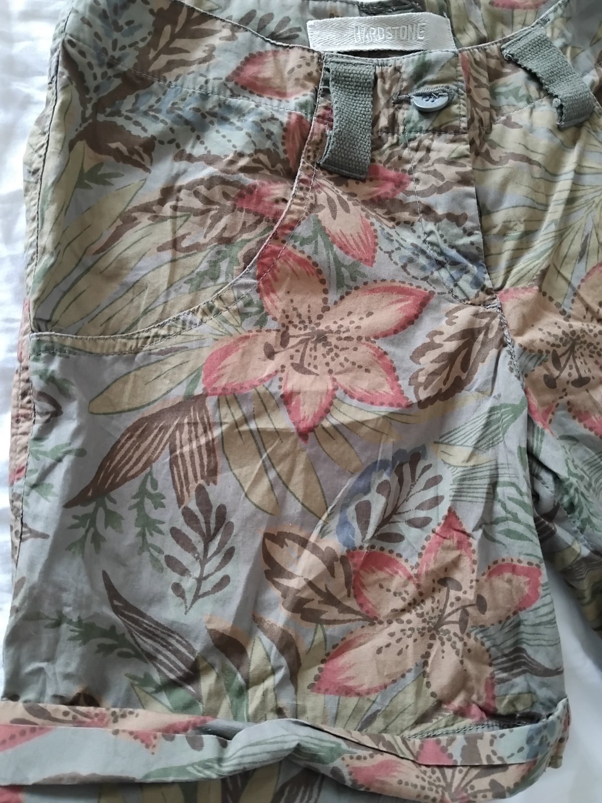 Velmi zaujimava kombinacia farieb tmavozelenej s cervenymi kvetmi,v pase na snurku,pas 38 cm a dlzka 20 cm