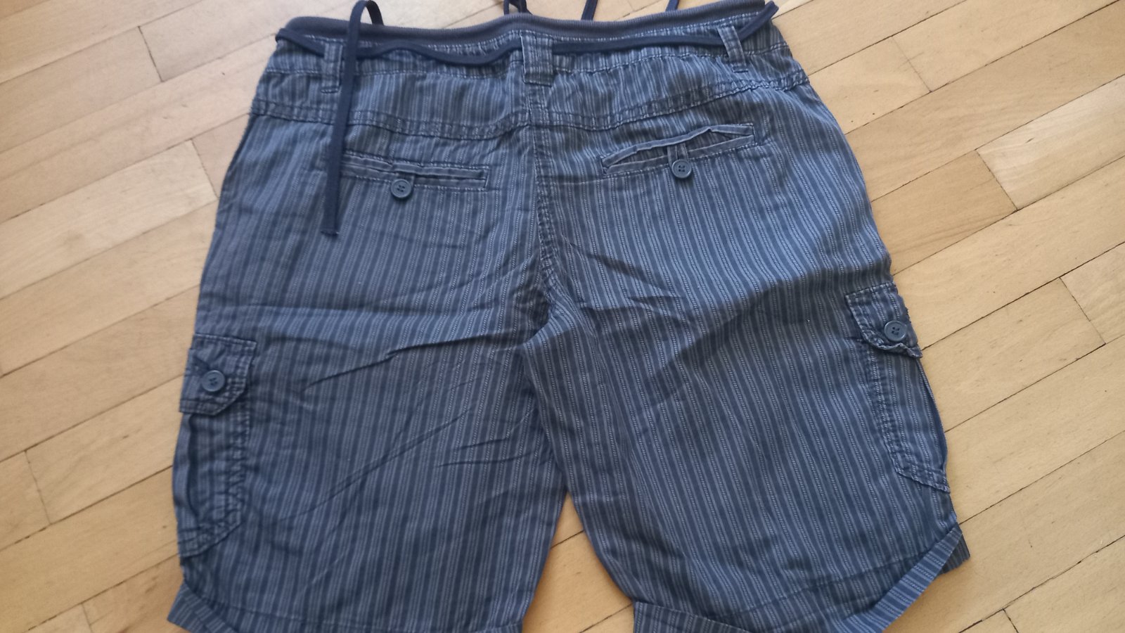 Predám dámske šortky o veľkosti M o rozmeroch celková dĺžka je 30cm šírka pásu je 36cm cena 5 eur.