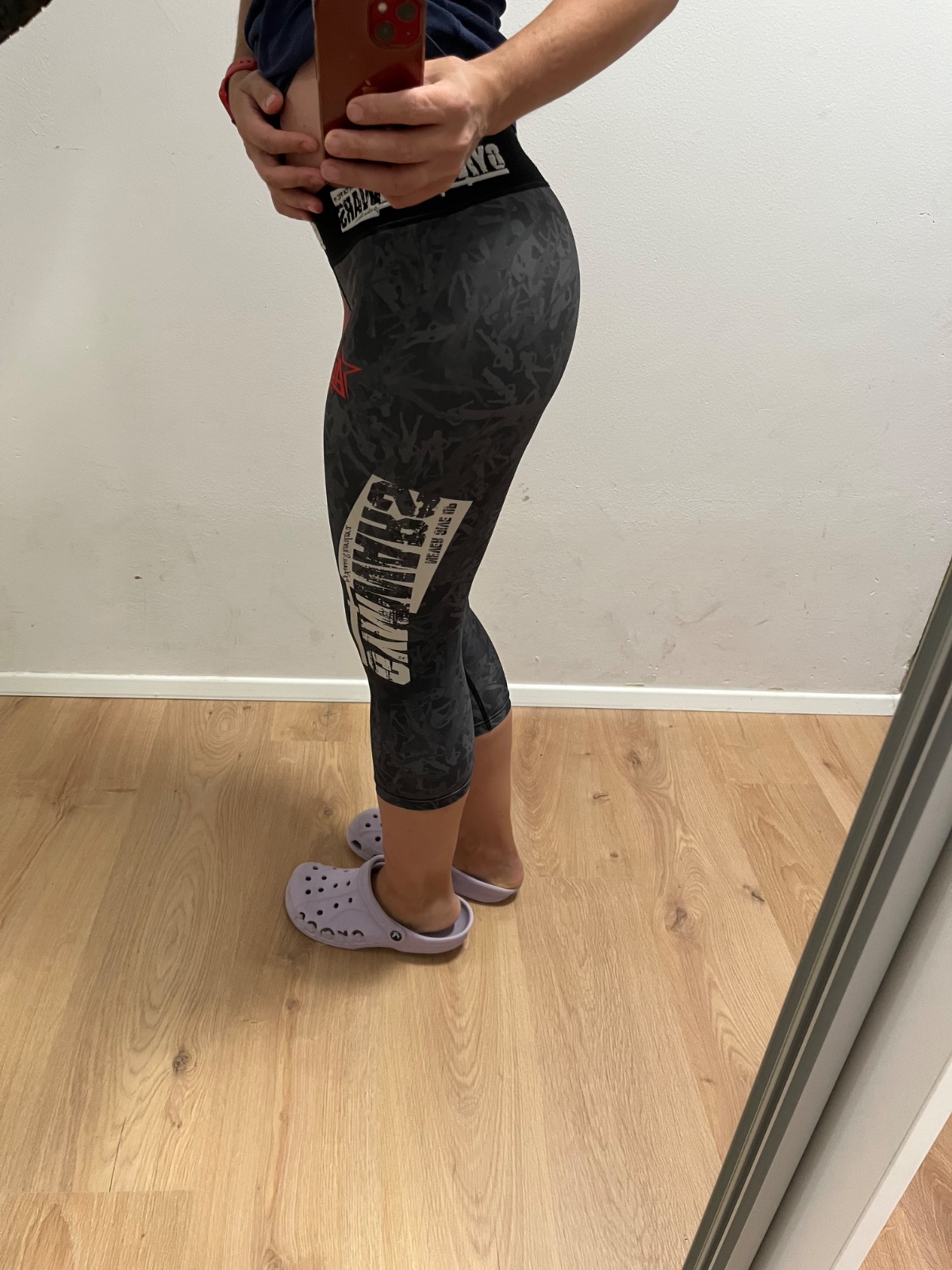 Ponúknem na predaj 3/4 leginy unikátneho dizajnu (je to naozaj limítka,bolo urobené len 100 kusov) značky GymWars. Velmi kvalitná latka s kompresnymi vlastnosťami, pas s gumovými bodkami, ktorý naozaj drží. Už niečo za sebou majú - zmolky (od činok) a našla som aj žlté škvrny na vnútornej strane (netuším odkiaľ, asi spôsobil to nejaký práci prostriedok). Je to naozaj kvalitný kus, ktorý bude slúžiť ešte velmi dlho. Velkost S, ale aj na XS budú výborne. PC vysoká.