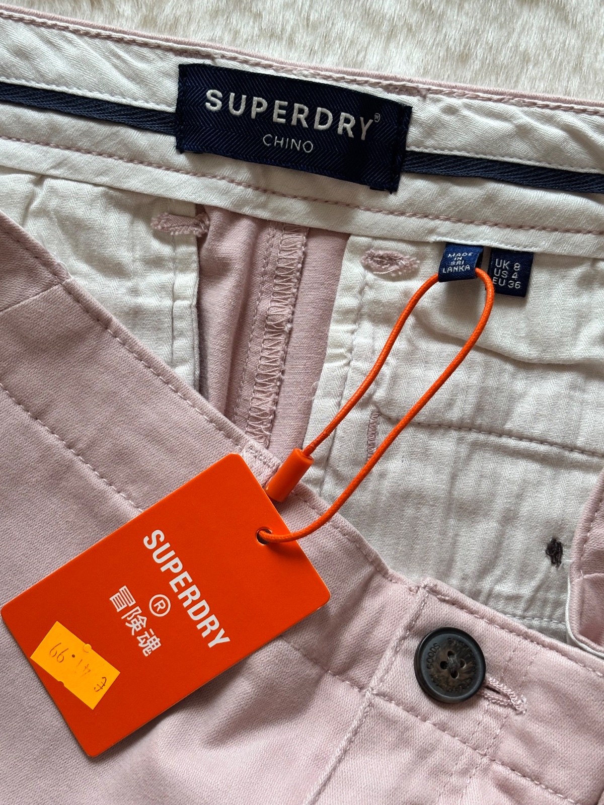 Svetloružové chino kraťasky, farba je krajšia, nejde mi odfotiť. Bavlna, elastan.