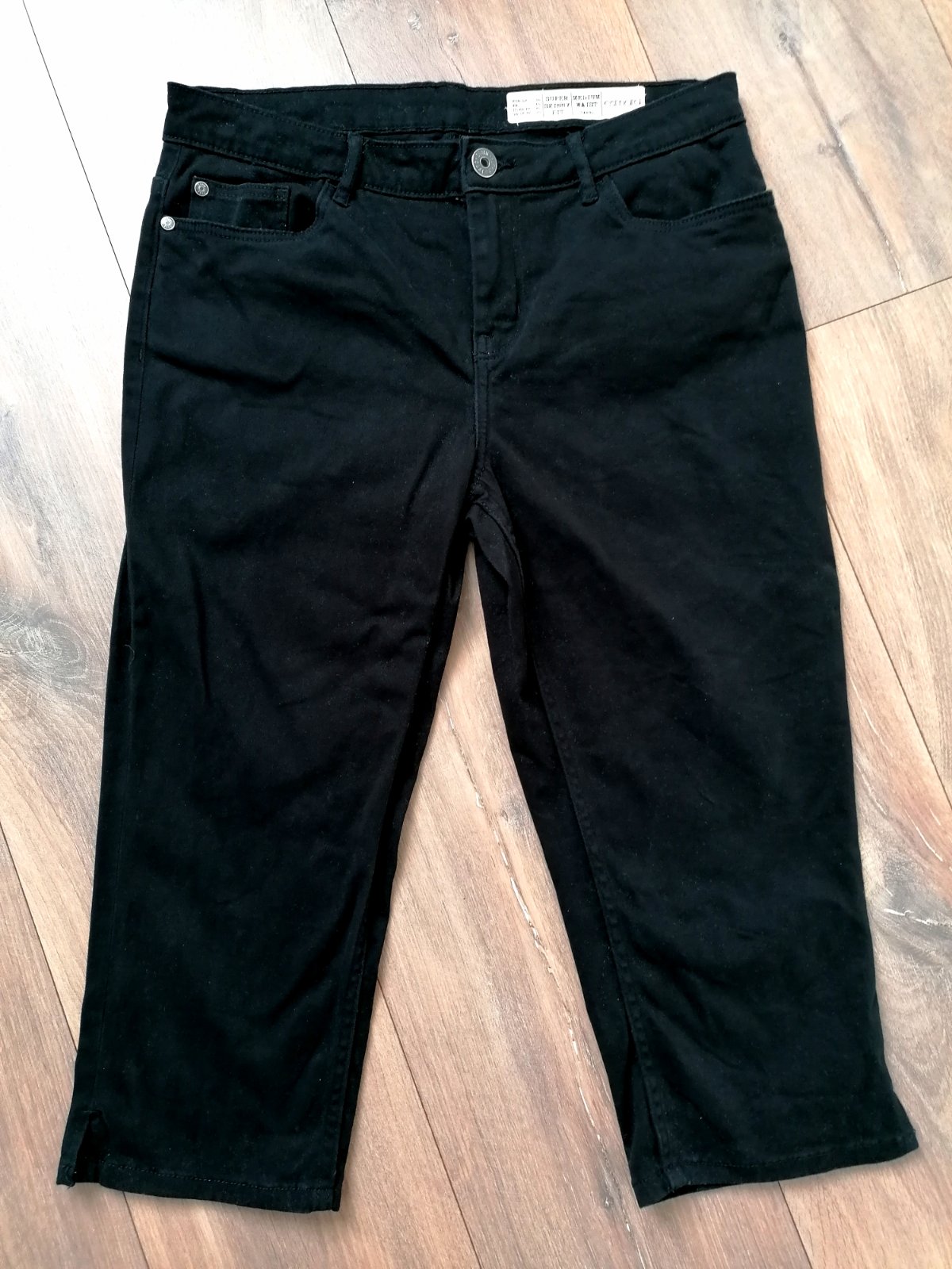 Čierne riflové 3/4 nohavice, dĺžka 70 cm, pas 37-39 cm. Malo nosene.