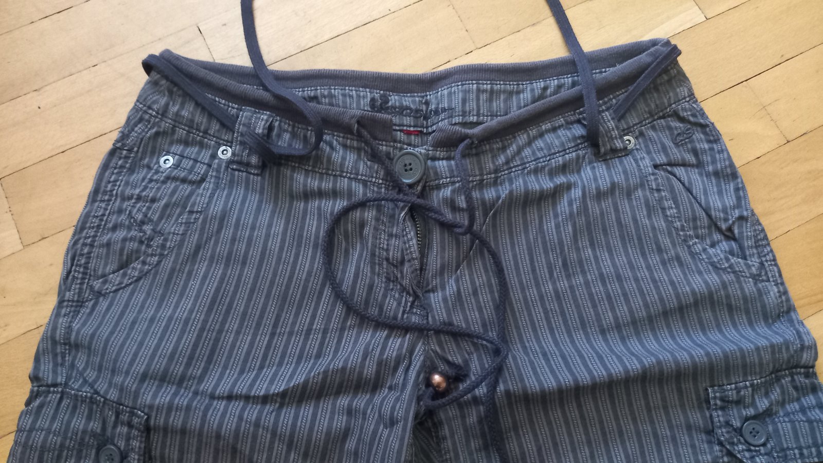 Nosené, v dobrom stave. Zadné vrecká sú falošné. Opasok sa dá dať dole. + poštovné. Nevymieňam. Ak máte nejaké otázky, pokojne napíšte.