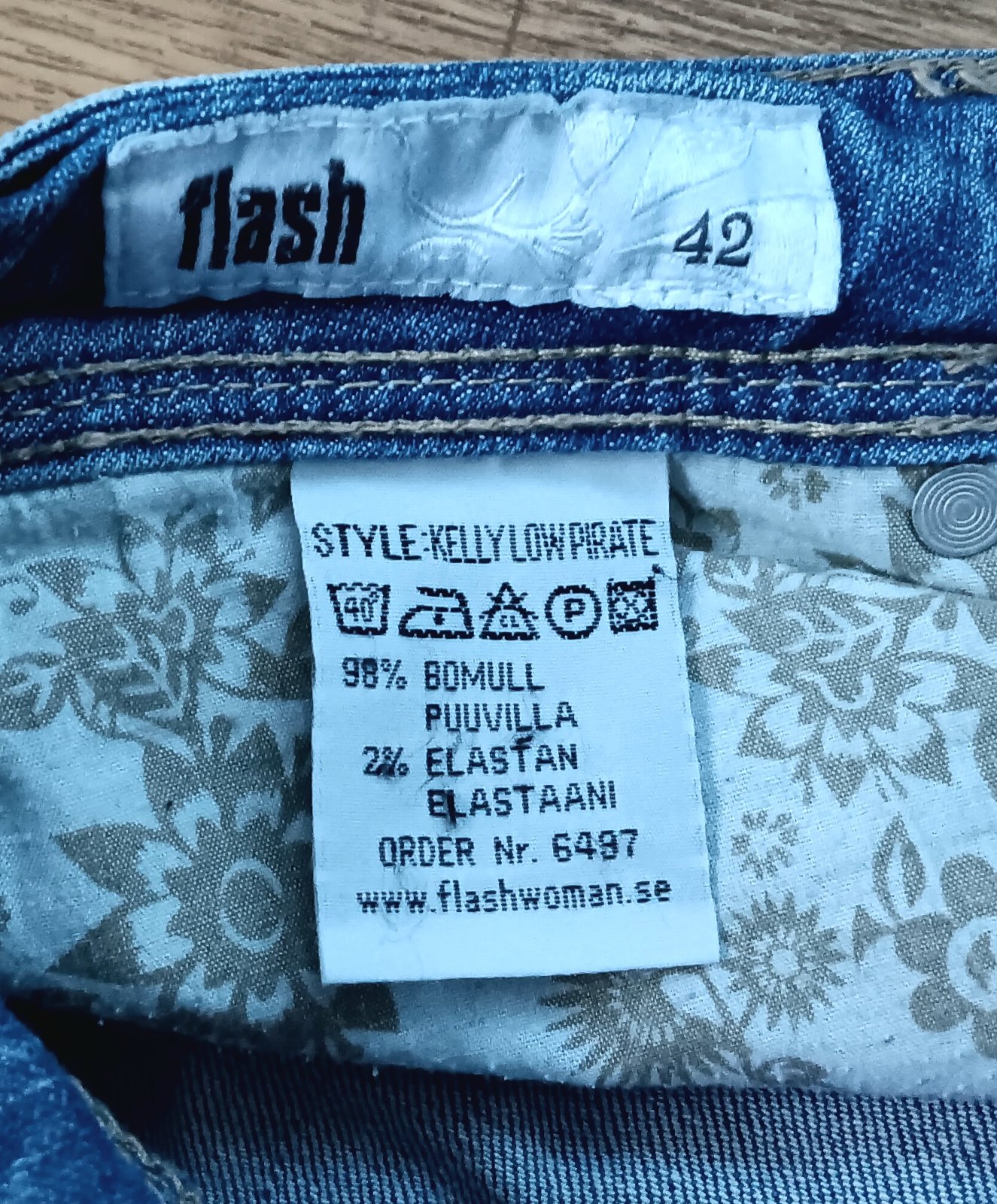 Darujem pri hocijakom nákupe, na vyžiadanie, nosené 3/4 rifle bez poškodení ,pribrala som....98% bavlna, 2% elastan....pás 42-43cm....vonkajšia dlžka 64cm,...2vrecka vpredu aj vzadu, putka na opasok, zapínanie na menší zips a gombičku....