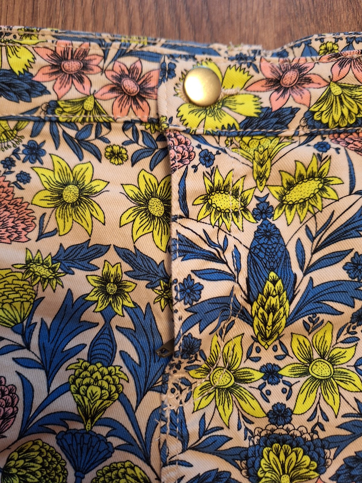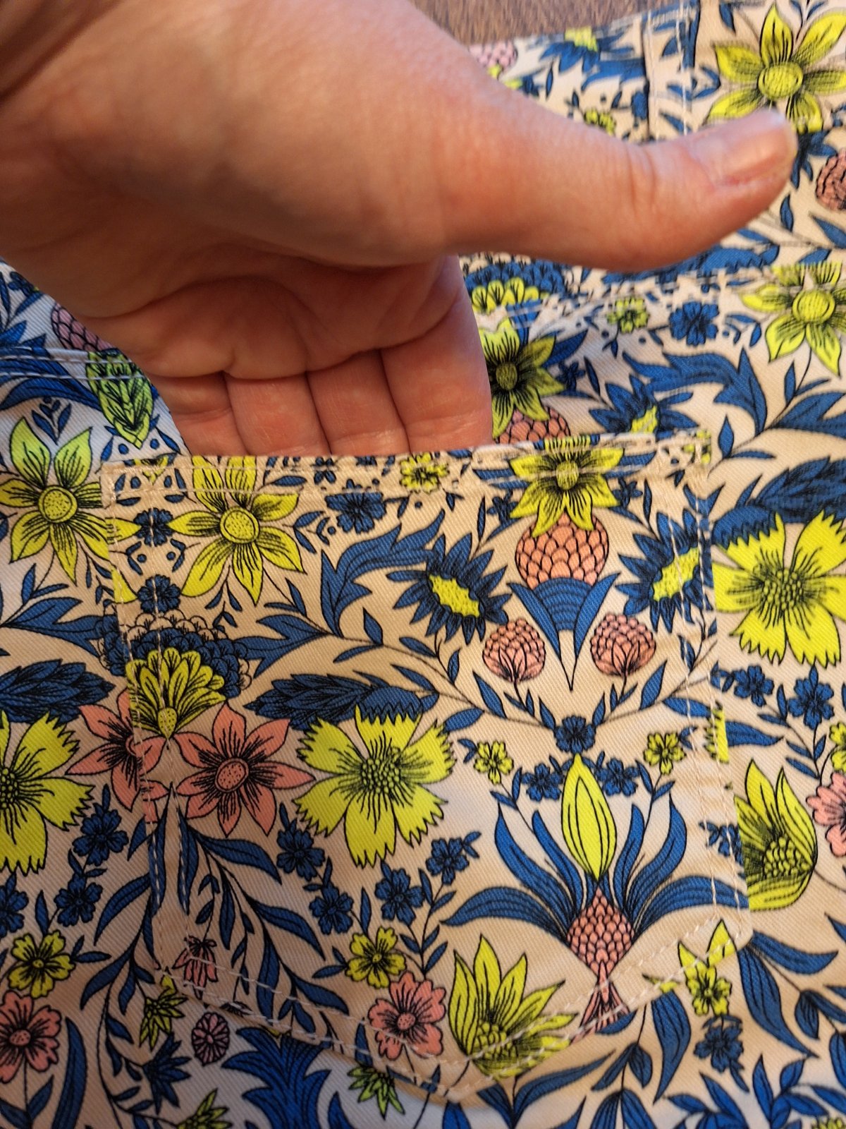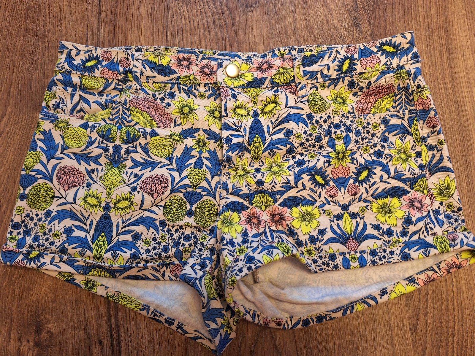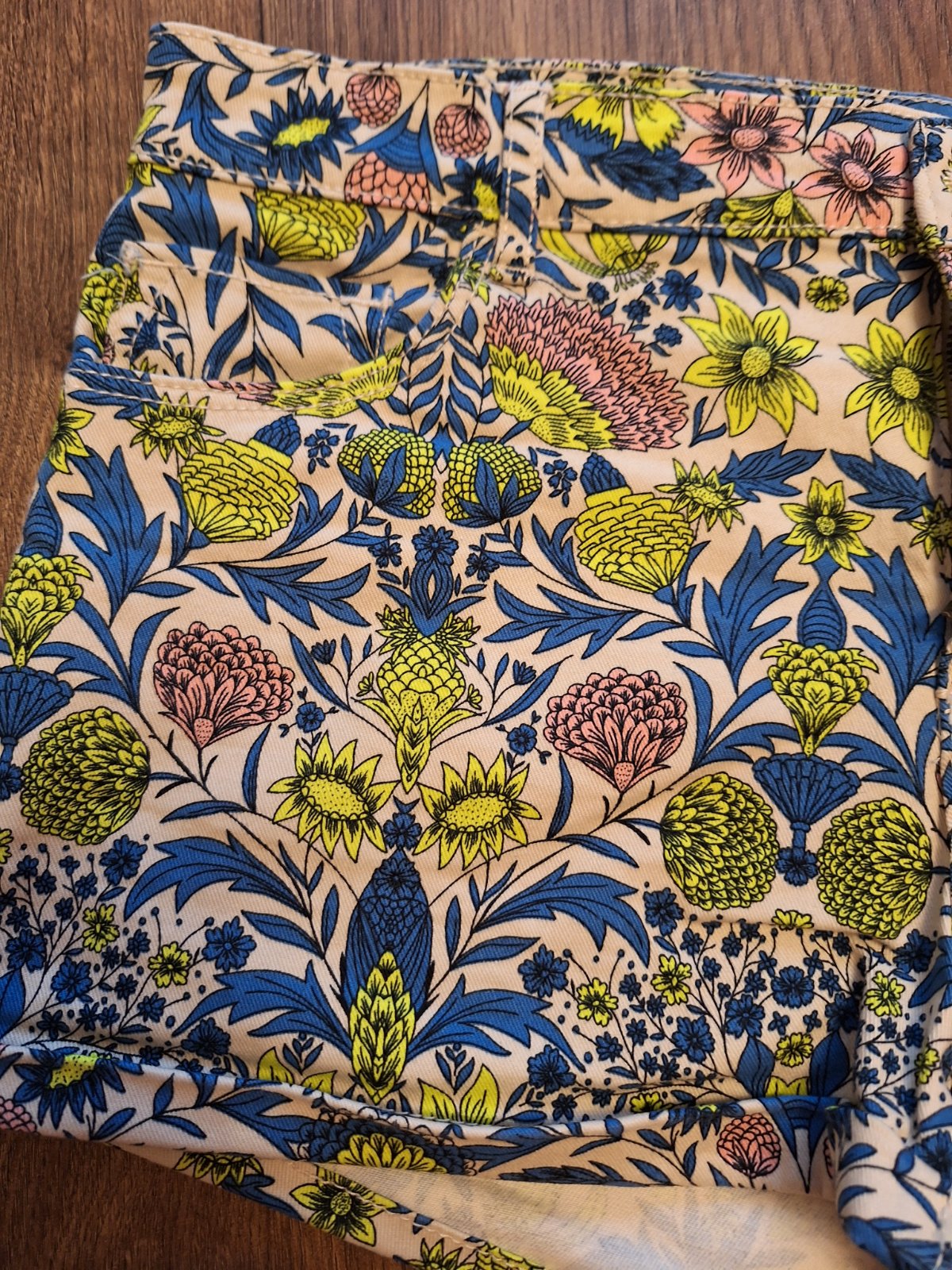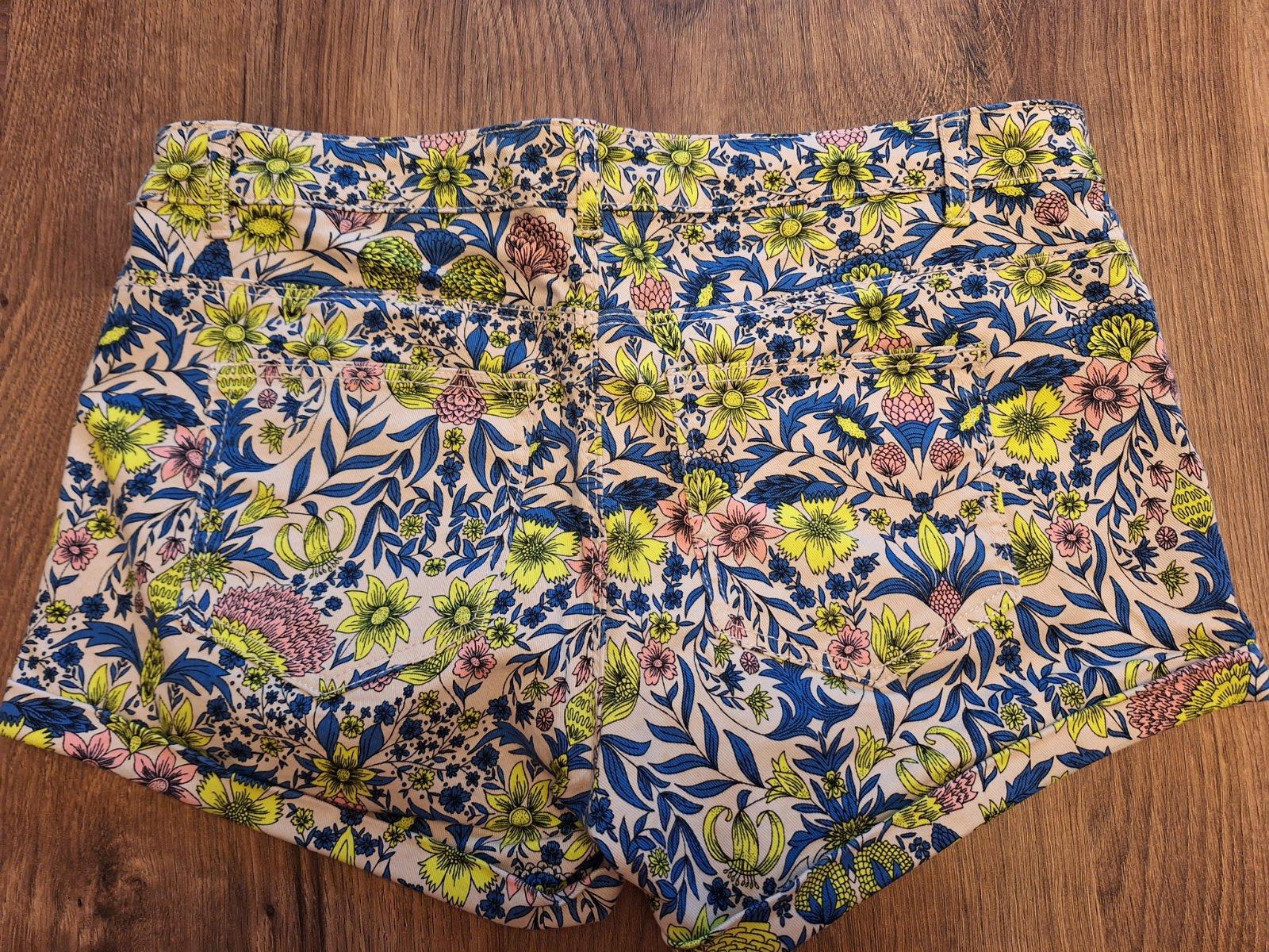 Prekrásne farebné kvetované kraťasy na leto. Žiarivé farby ideálne keď chcete vyniknúť. Viete k nim dopasovať veci či už žltej modrej alebo ružovej farby. Oblečené 2x. Top stav. Vzadu vrecká. Materiál riflového typu, v páse sa vedia troška natiahnuť sú elastické, taká letnejšia tenšia letná riflovina.