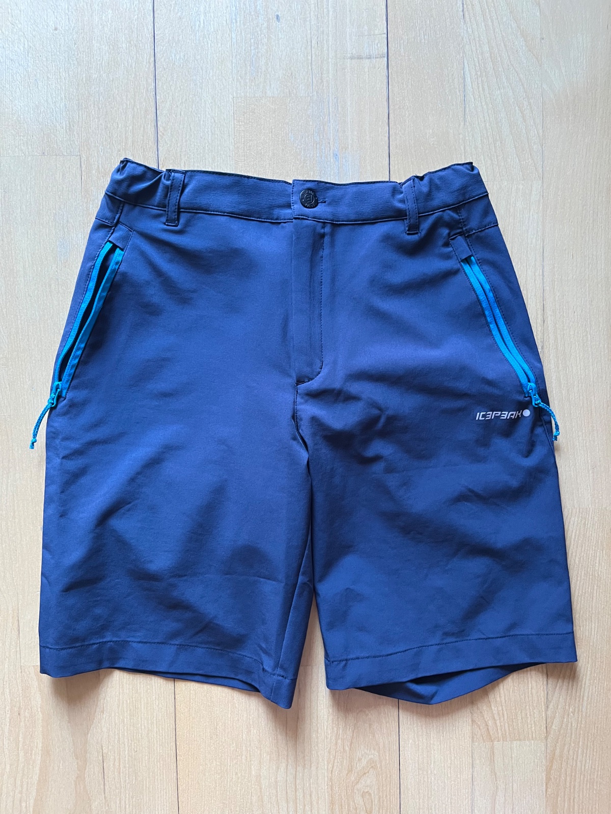 Predam detske trekove kratasy Icepeak, uvedena velkost 158/164 - zodpovedaju na vek 11-13 rokov (skor na stihli postavu). Farba tmavoseda s tyrkys lemovanim, v pase zips + gombík + zvnutra stahovacia nastavovacia gumicka. Super stav, bez akýchkoľvek poskodeni, par krat oblecene. Bocna vyska 46 cm, sirka v pase v klude 33 cm, material jemne elastický, sportovy - trekovy funkčný. 2 bocne vrecka na zips. BA - Ruzinov.