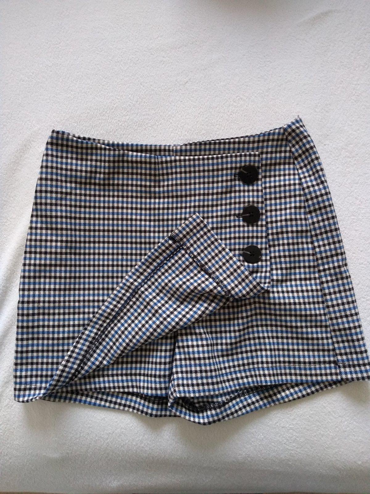 Predám nenosené kraťasy alebo sukňokraťasy.V zadu zips.Pás 2 krát 31 cm.Celková dĺžka meraná stredom 34 cm.Cena 6€ plus poštovné.