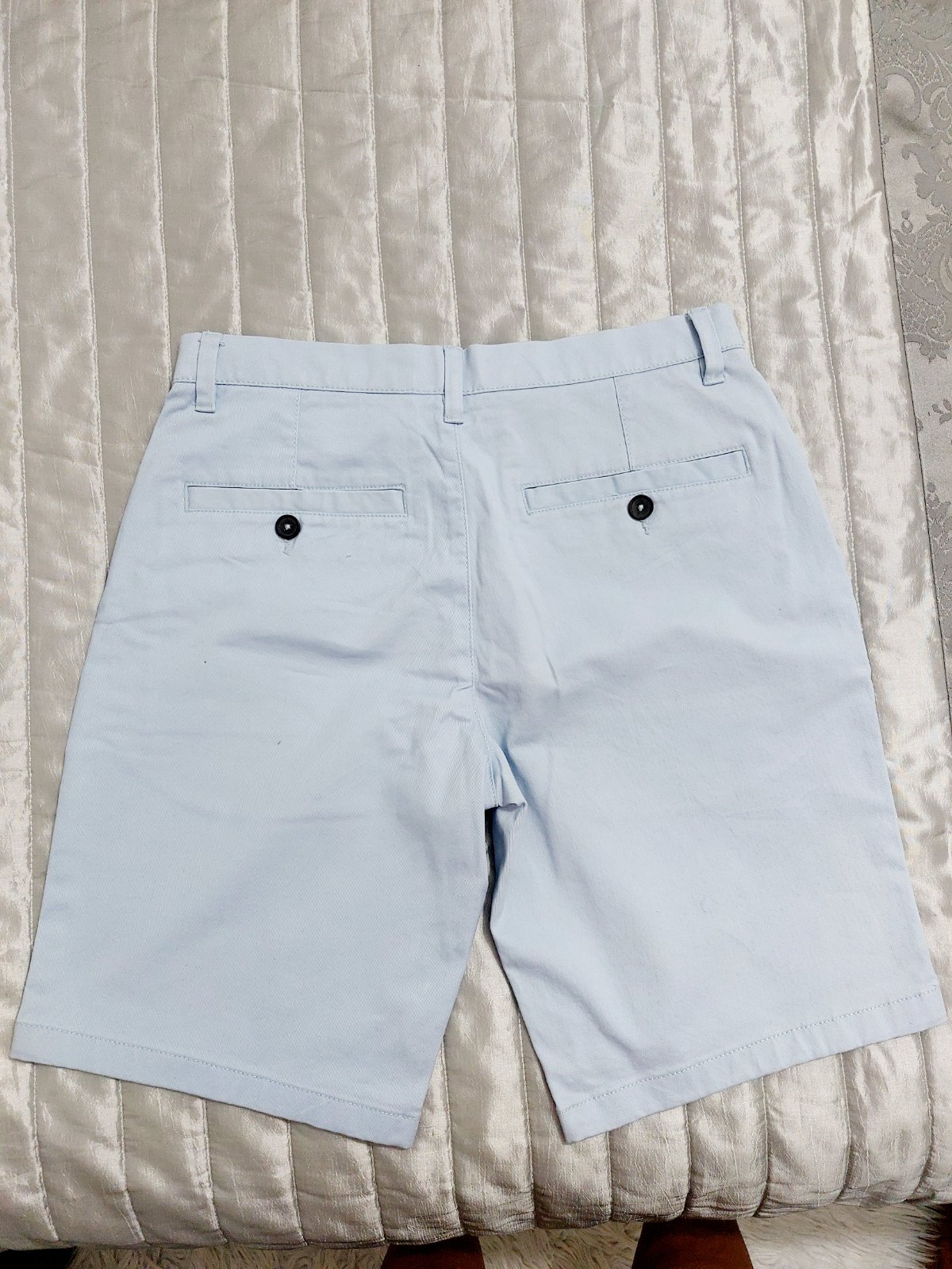 Predám pánske krátke rifle značky F&F, veľkosť 30W, detailné štepovanie v kombinácii s nitmi, bledomodrej farby, pohyblivý pás vo forme patentu so šnúrkou, ktorú si sami nastavíte podľa potreby. Vp...