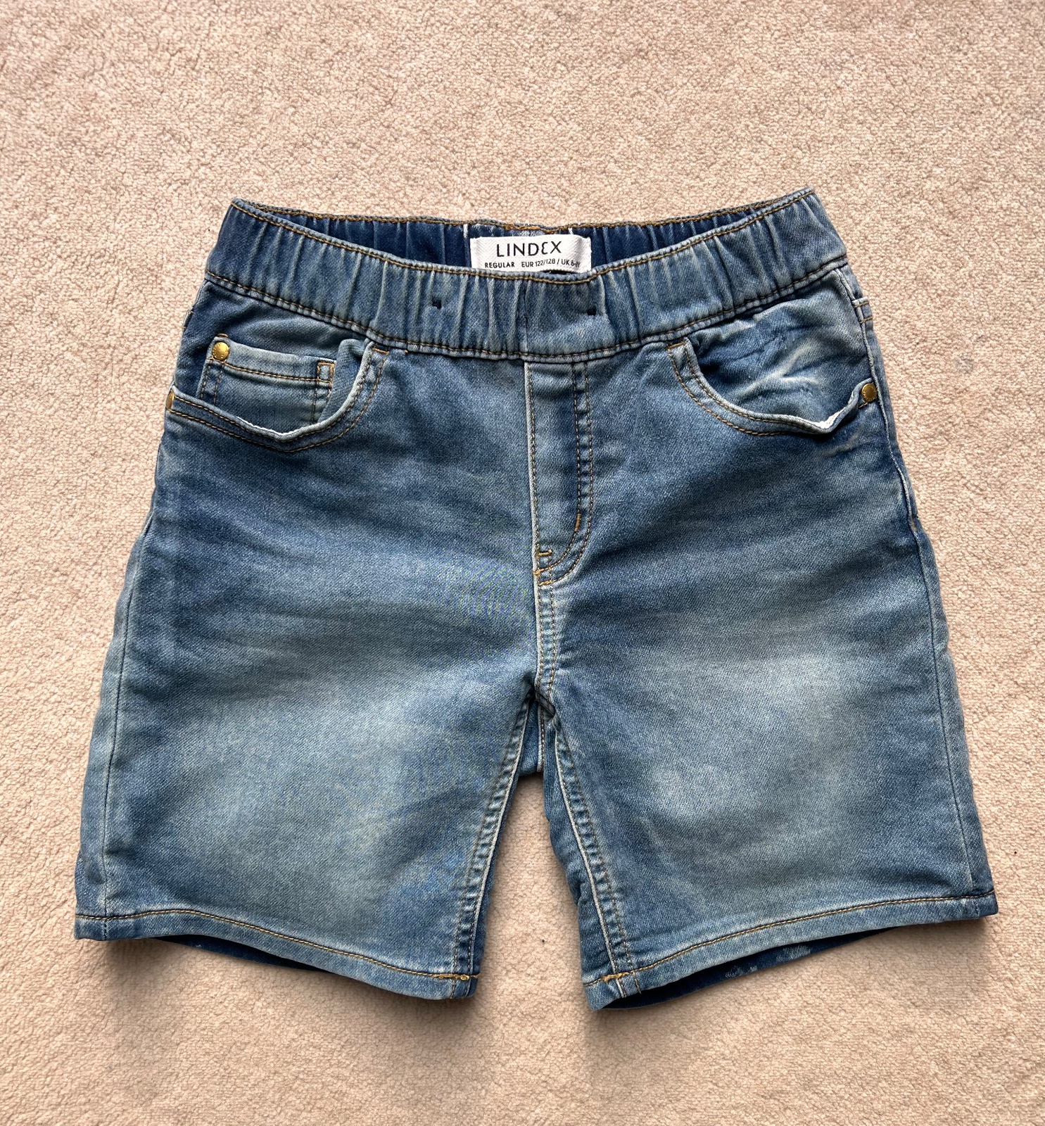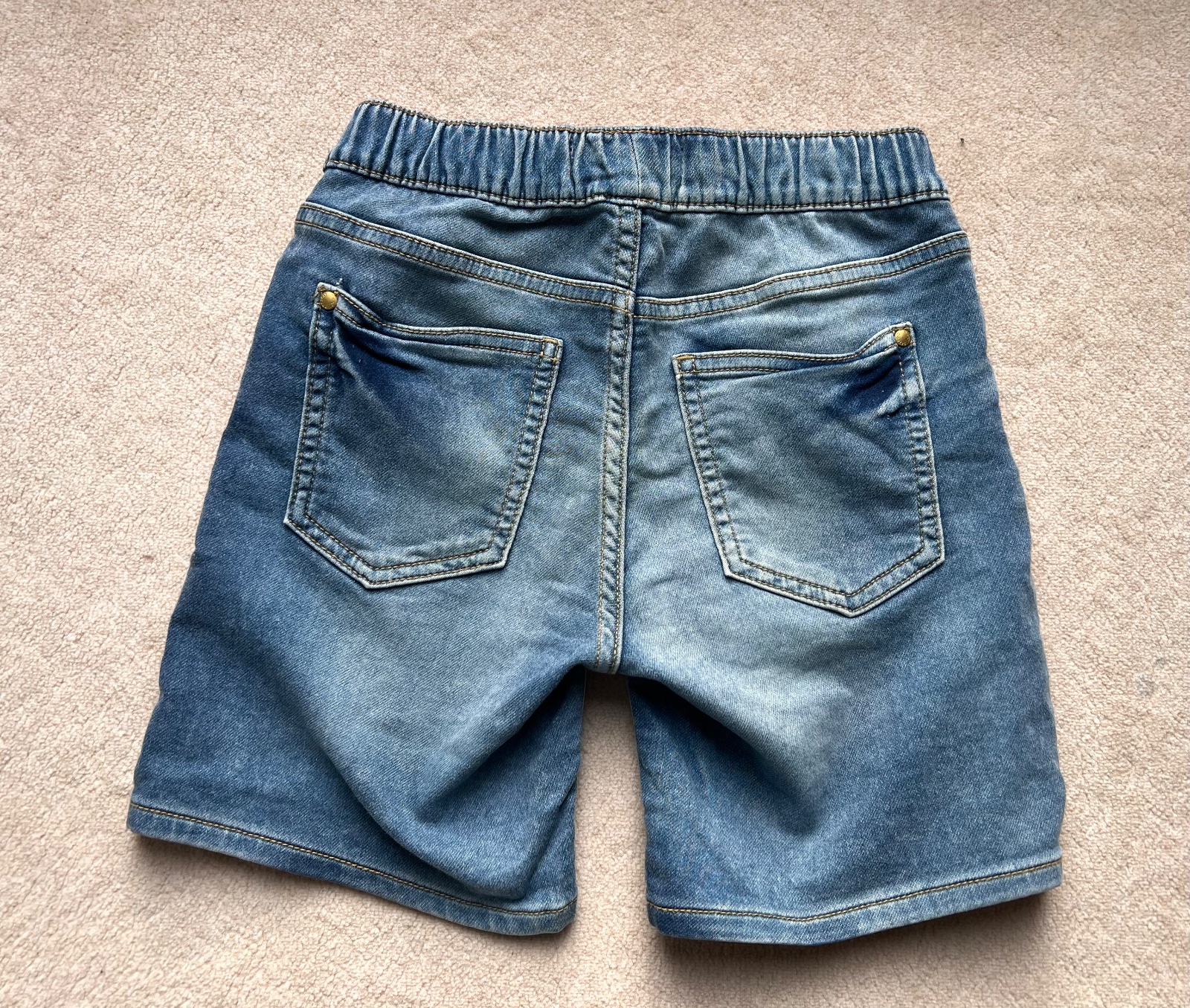 Majú pás regulovateľný s gumičkou na gombík. Sú z mierne elastickej rifloviny.