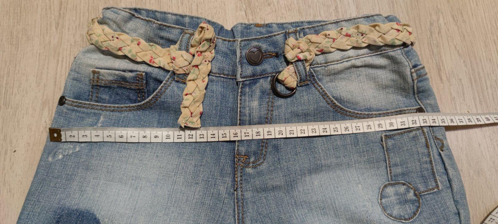 Tenké riflové šortky so srdiečkami. Nastaviteľný pás, dobrý stav bez poškodení. + poštovné