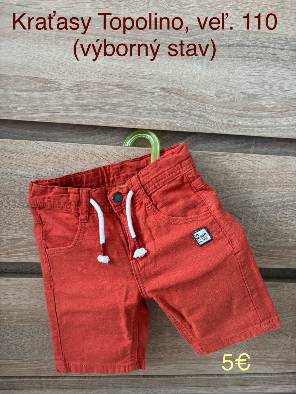 Parádne kraťasy, 100% bavlna, zapínanie na zips, možnosť prispôsobiť pás, 2 predné vrecká.