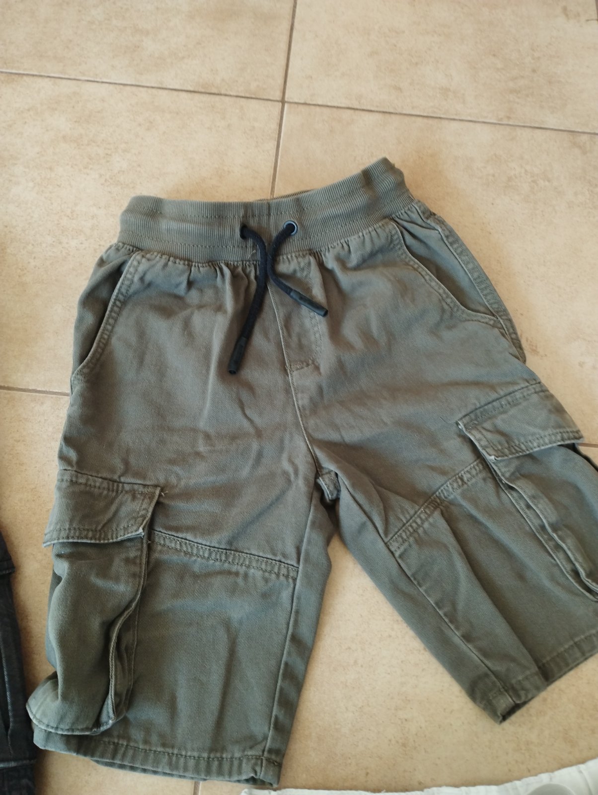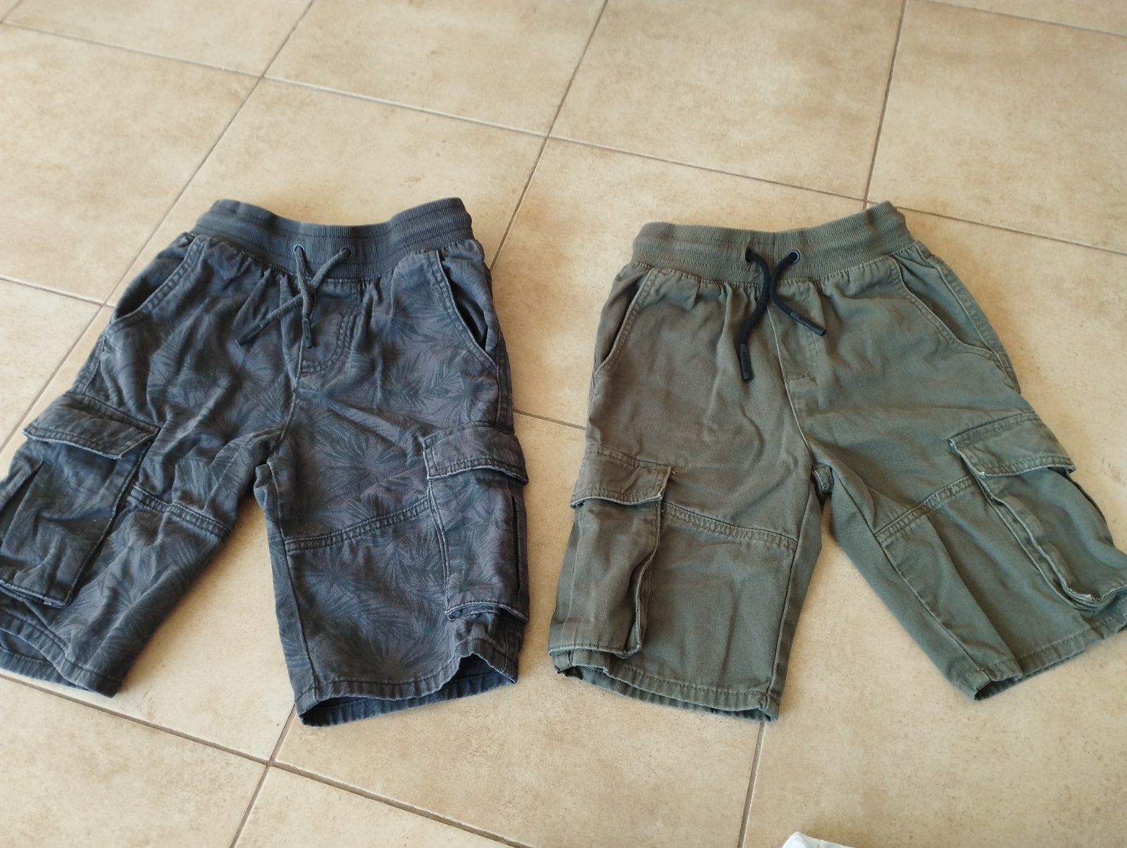 Ponukam par krat oblecene neposkodene chlapcenske sortky, znacka Chapter Young, velkost 140. Sortky su vyrobene z hrubsej bavlnenej latky vo vojenskej farbe, v pase maju gumicku a snurku na stahova...