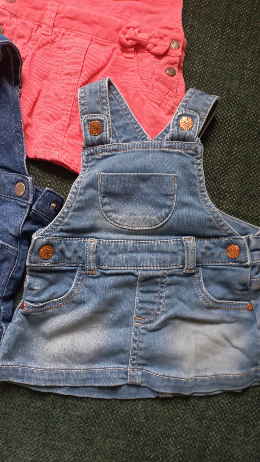 Riflové kratasy a dve sukničky na traky, veľmi pekné . Značky a veľkosť na fotkách. Pribalím ešte niečo v týchto veľkostiach, nech nájdu vecičky využitie . Nie je podmienka kúpiť všetky spolu