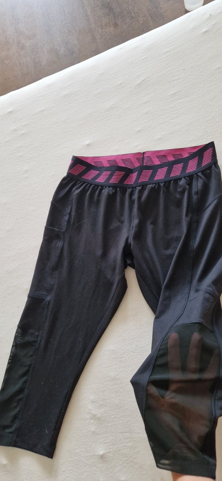 Trojštvrťáky Crivit velk. M - 40/42. Dlžka 70 cm, pás 2 x 40 cm v kľude, je tam guma. Sú elastické. Mám k nim aj top.