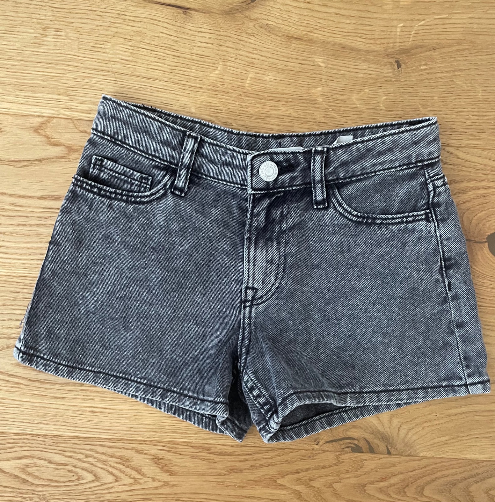 Krátke nohavice riflove, sivé, veľkosť 134,znacka hm, cena 4,80eur pekný stav,, v pás sa sa regulovať,