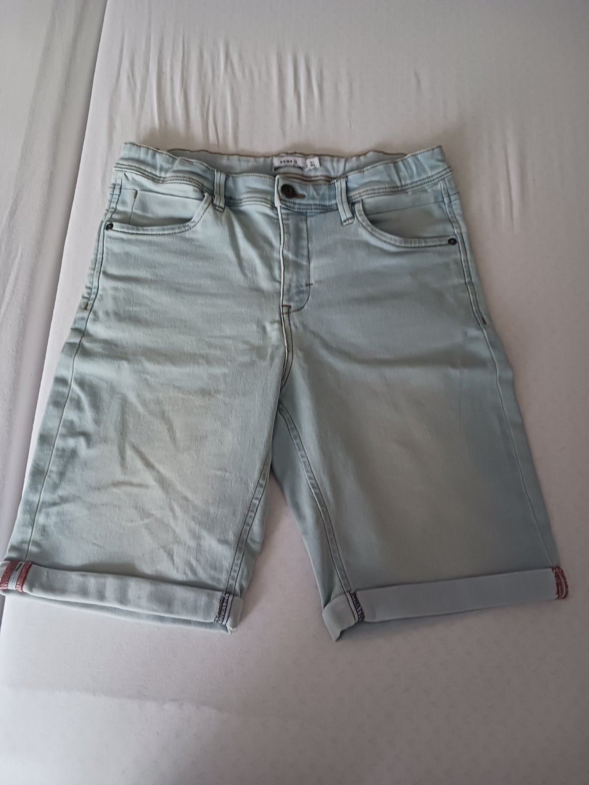Ani neviem či boli oblečené. Svetlomodrá majú sťahovaciu gumu. Vhodné aj pre štíhlejšieho chlapca.