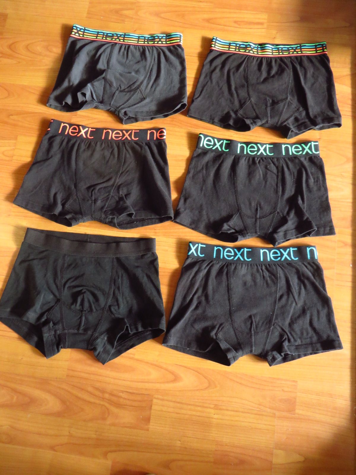 Predám chlapčenské nosené boxerky, 6 ks, značka NEXT je 5 ks a 1ks - celé čierne je iná značka. Veľkosť je 140, pás meria 28 cm (x2), čierne sú veľkosť 140-146, pás meria 29 cm. Sú v dobrom stave.