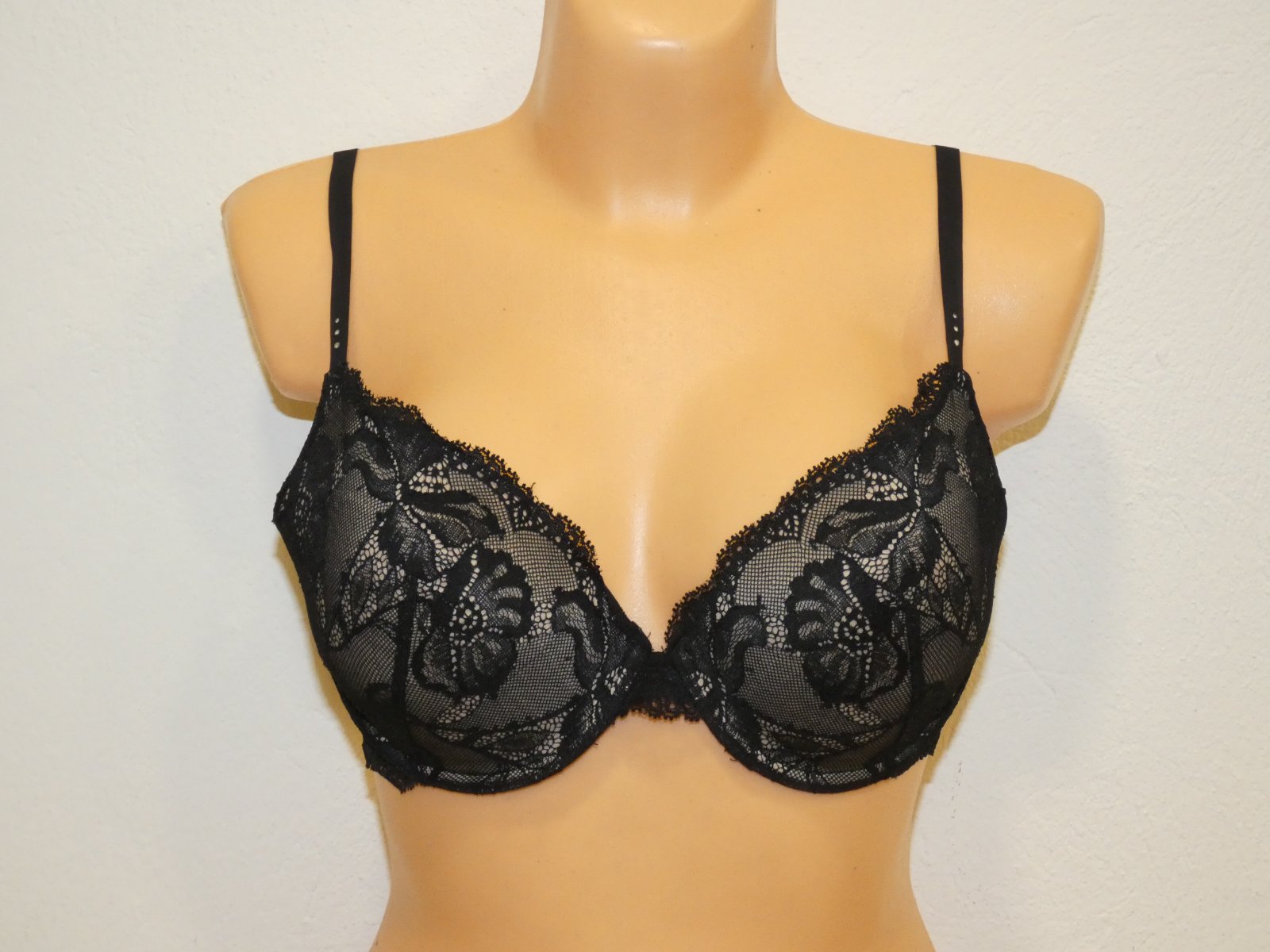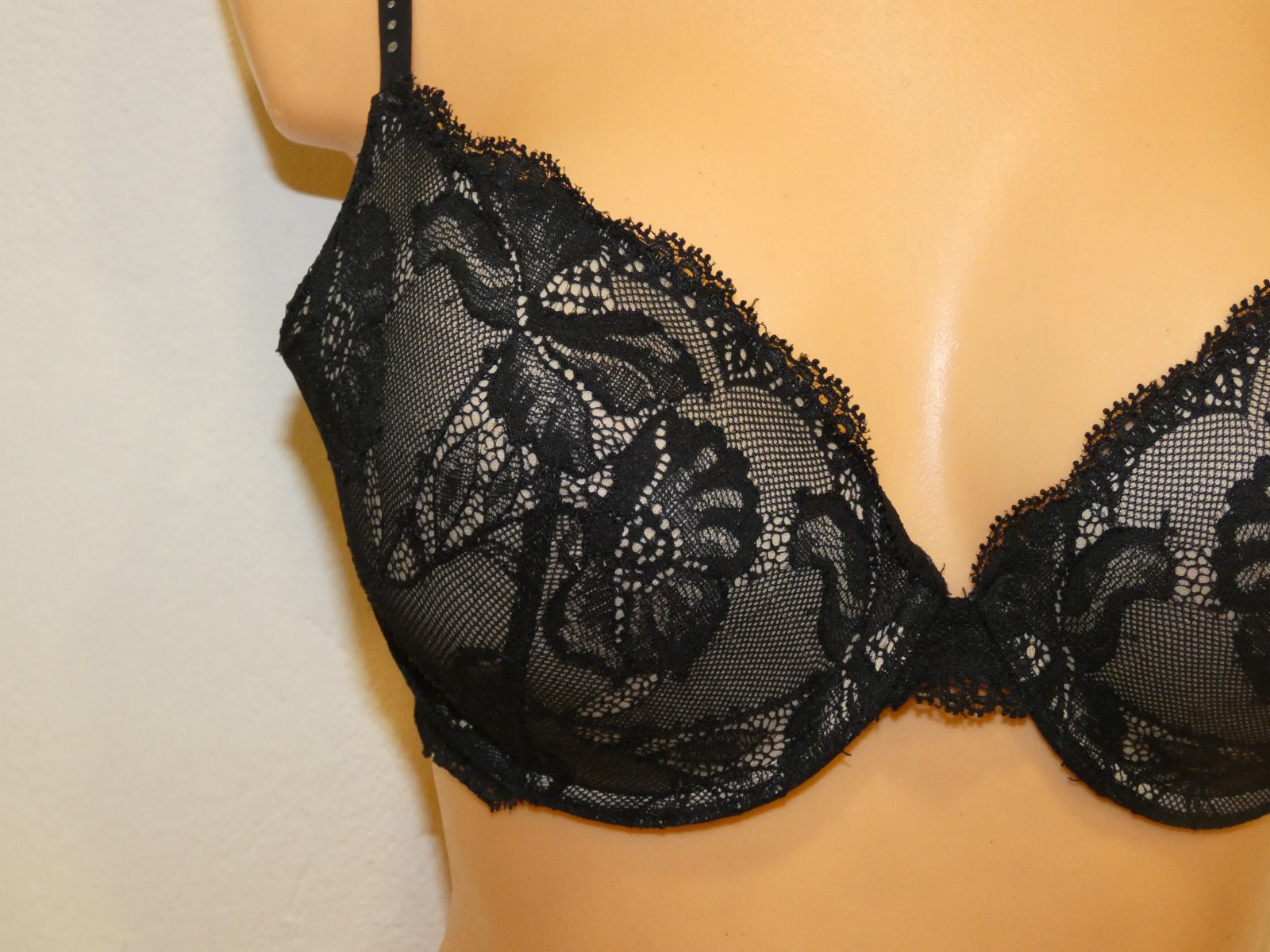 Minimálne nosená bez poškodenia. Veľmi pekne sedí mierne vystužená zo spodu. Veľkosť je 80C. Ramienka sú posuvné , vpredu majú malé 3 kamienky . Zloženie je 63% nylon, 17 % spandex a 20% elastán.