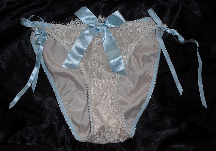predam nadherne luxusne nohavicky, jemnucke, raz oprane, kvalitne, detailne zdobene, telovo zlatiste, velkost uvedena m. zapinaju sa lubovolne na bokoch na maslicky prisposobia podla postavicky. vyska 12 cm po stred , celkova 24 cm predok.