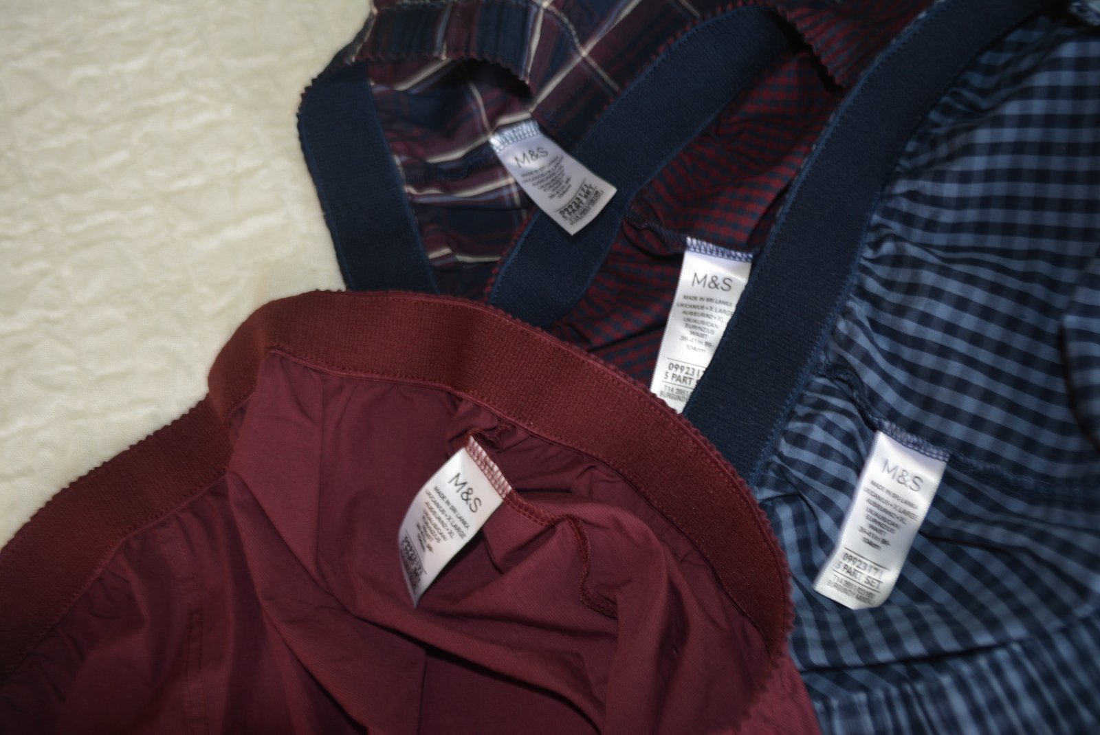 Tieto 4 ks sú celkom nové, bolo to 5-balenie, jedny boli použité, tie nie sú v ponuke. Manželovi sú široké v páse.