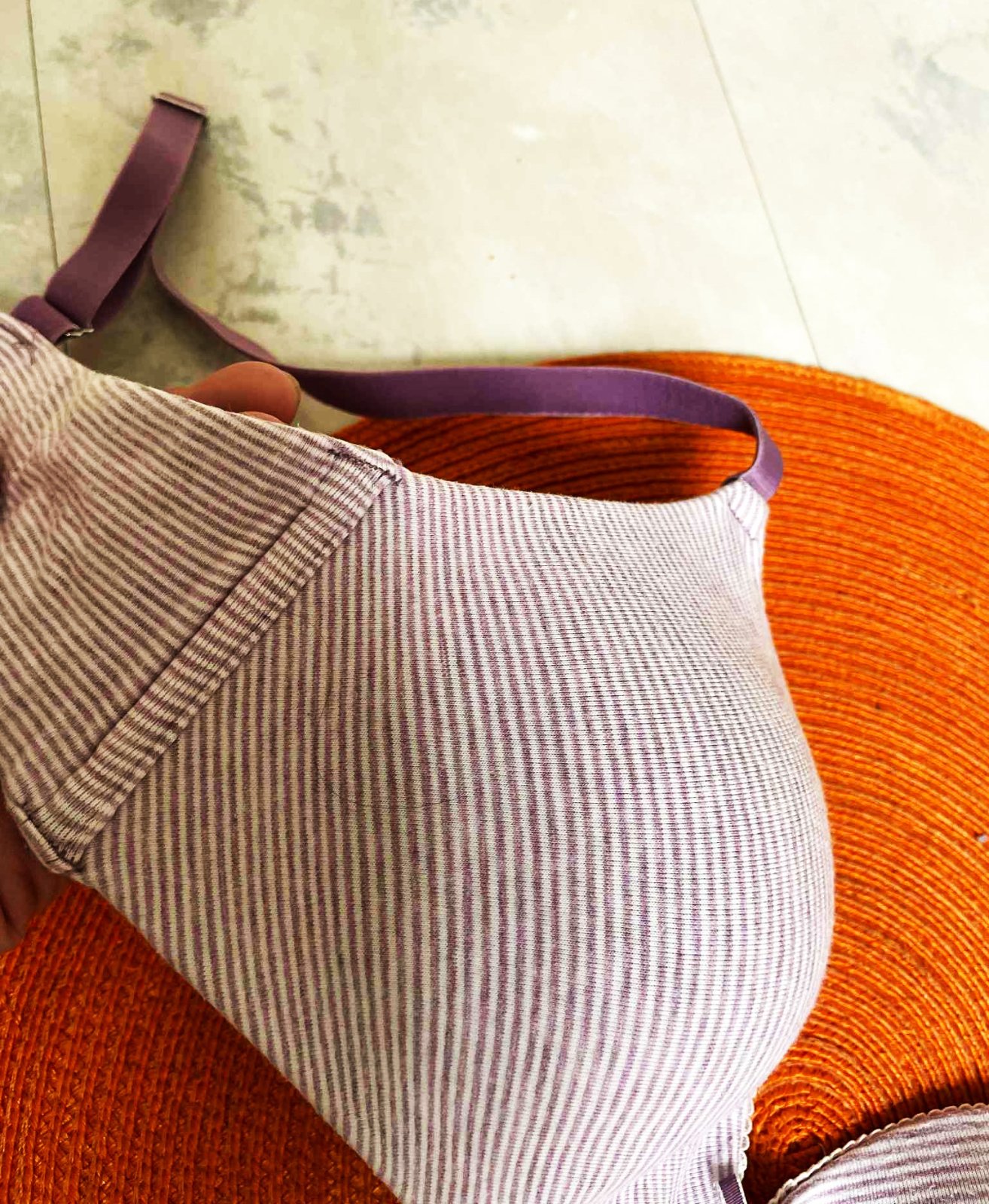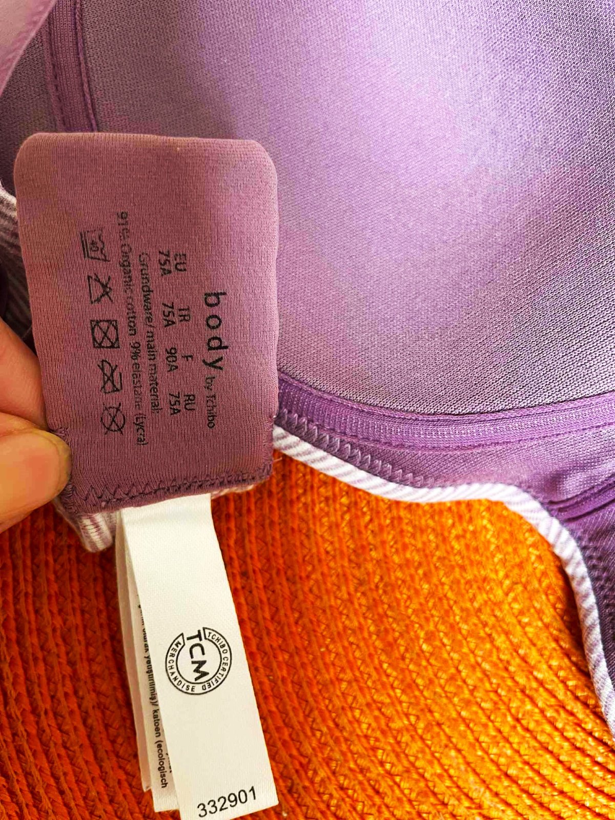 kvalitná raz opraná bezšvová podprsenka z organickej bavlny,farba ružovo - fialková, v top stave,veľkosť vyfotená,krásne sedí na postave,jednoliate košíky,pekne vystuženéné,bezšvovo tvarované, ľahké a mäkké,bez pevnej kostice,tvarujú prirodzený dekolt,košíčky takmer nevidno – ideálna pod úzke tričká,ramienka s nastaviteľnou dĺžkou