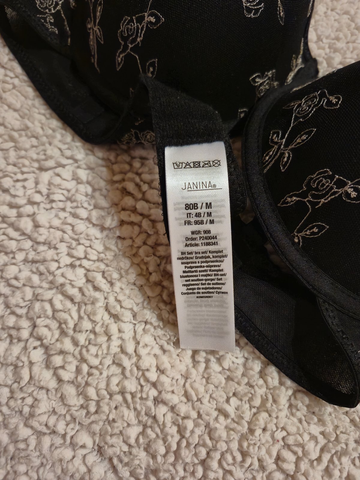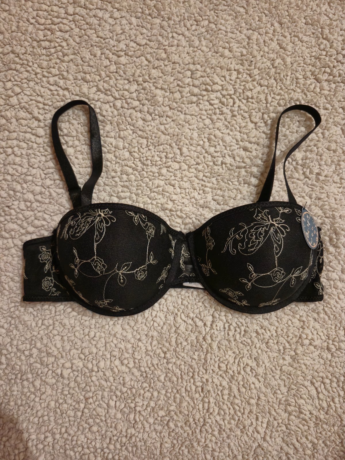 Nová čierna podprsenka s vyšívaným vzorom