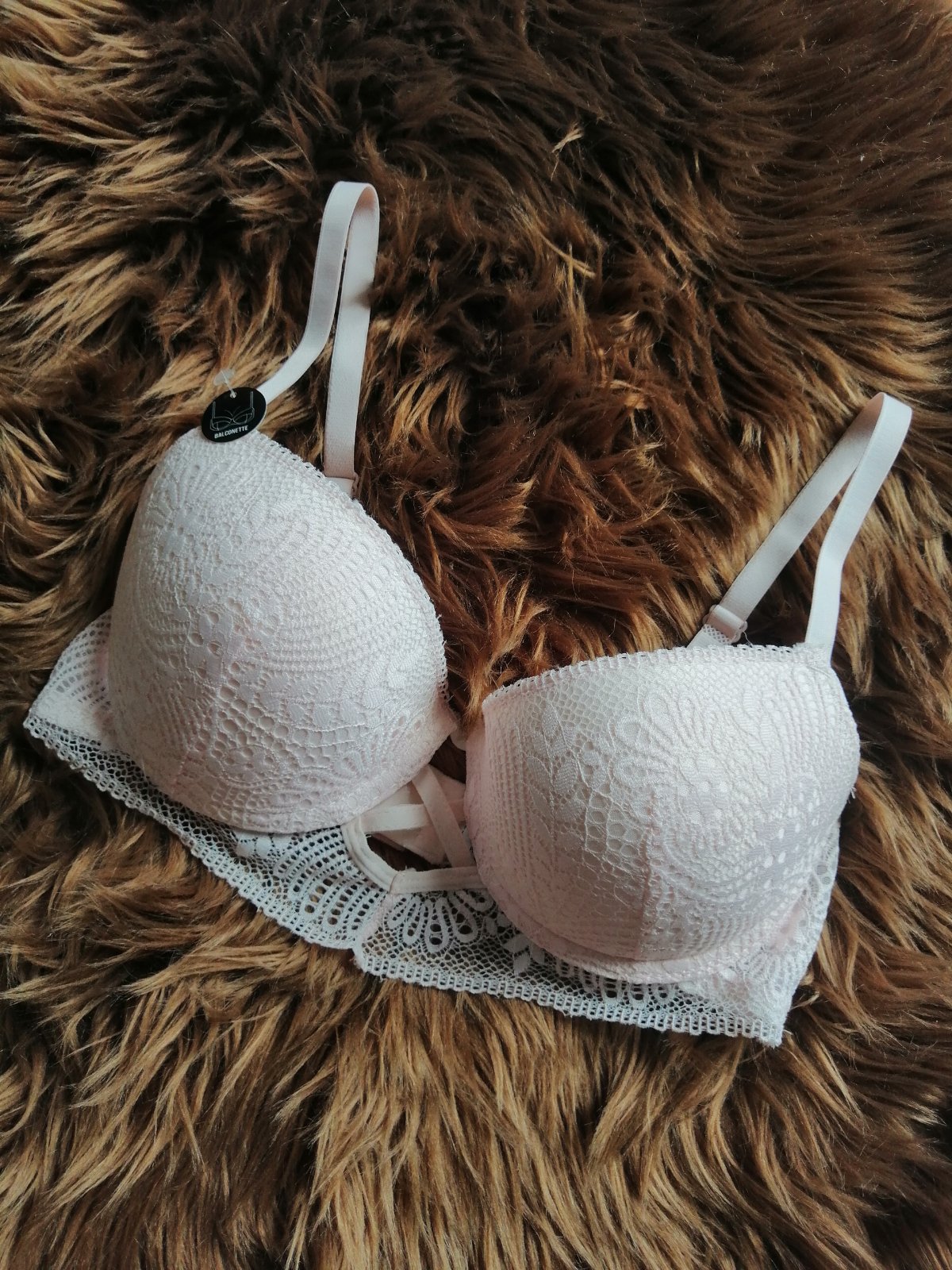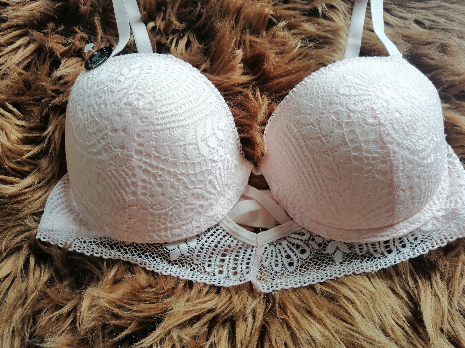 Nová podprsenka so zapínaním zo zadnej strany. Pod prsiami je čipka. Ramienka sa nedajú odopínať.