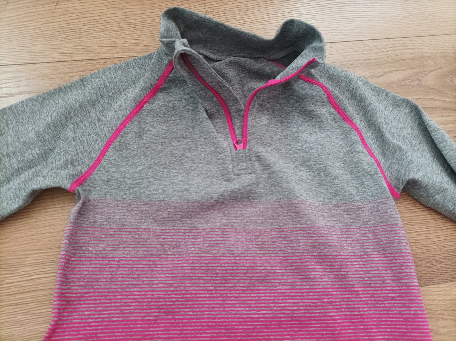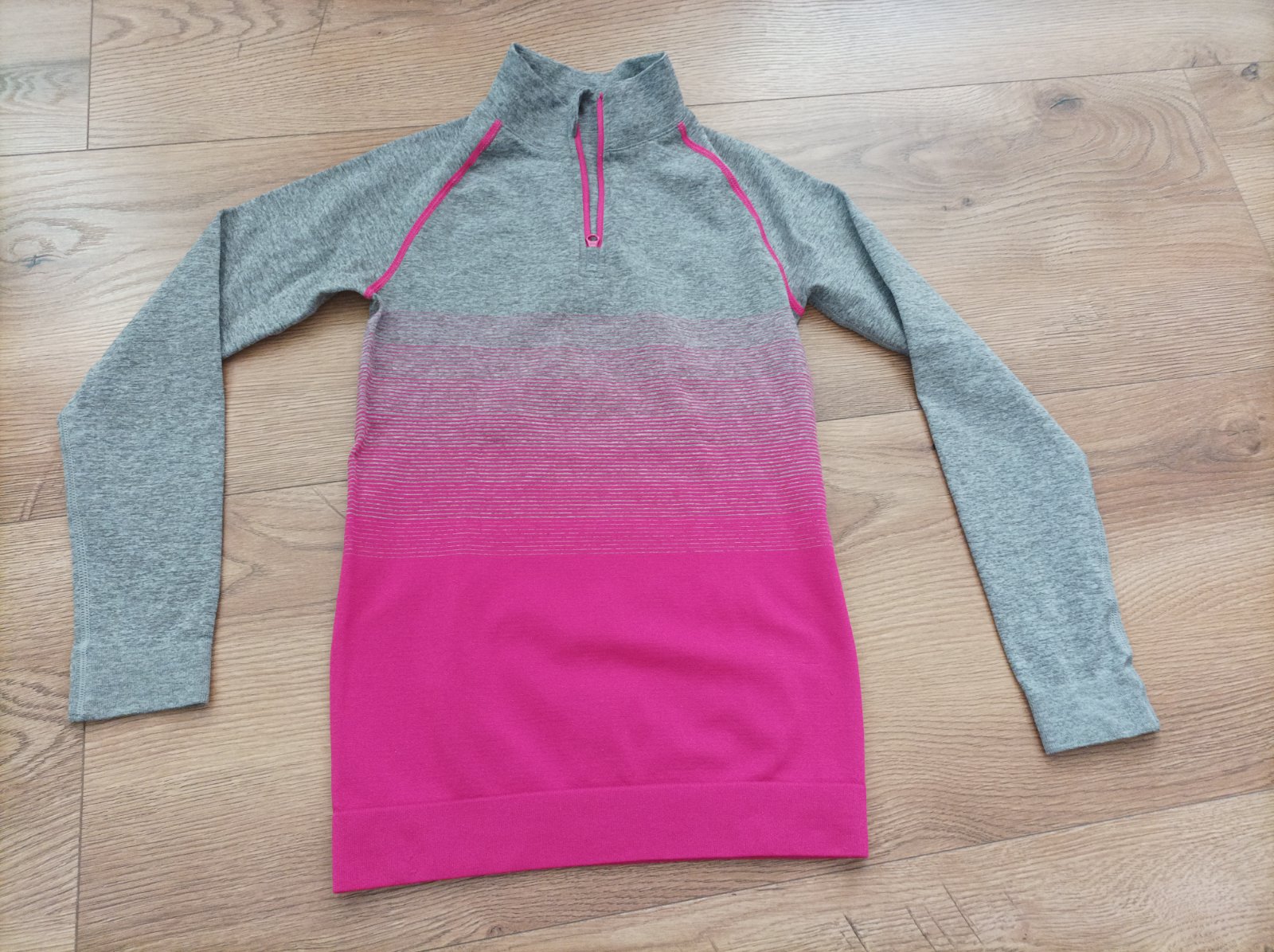Funkčné termotričko s dlhým rukávom, vpredu na zips. Je hrubšie. Dcérka nosila ako mikinu pod termotricko. V dobrom stave, bez žmolkov .Dĺžka je 54 cm, šírka je 33cm,. Veľkosť 134/140 Mám dva ku...
