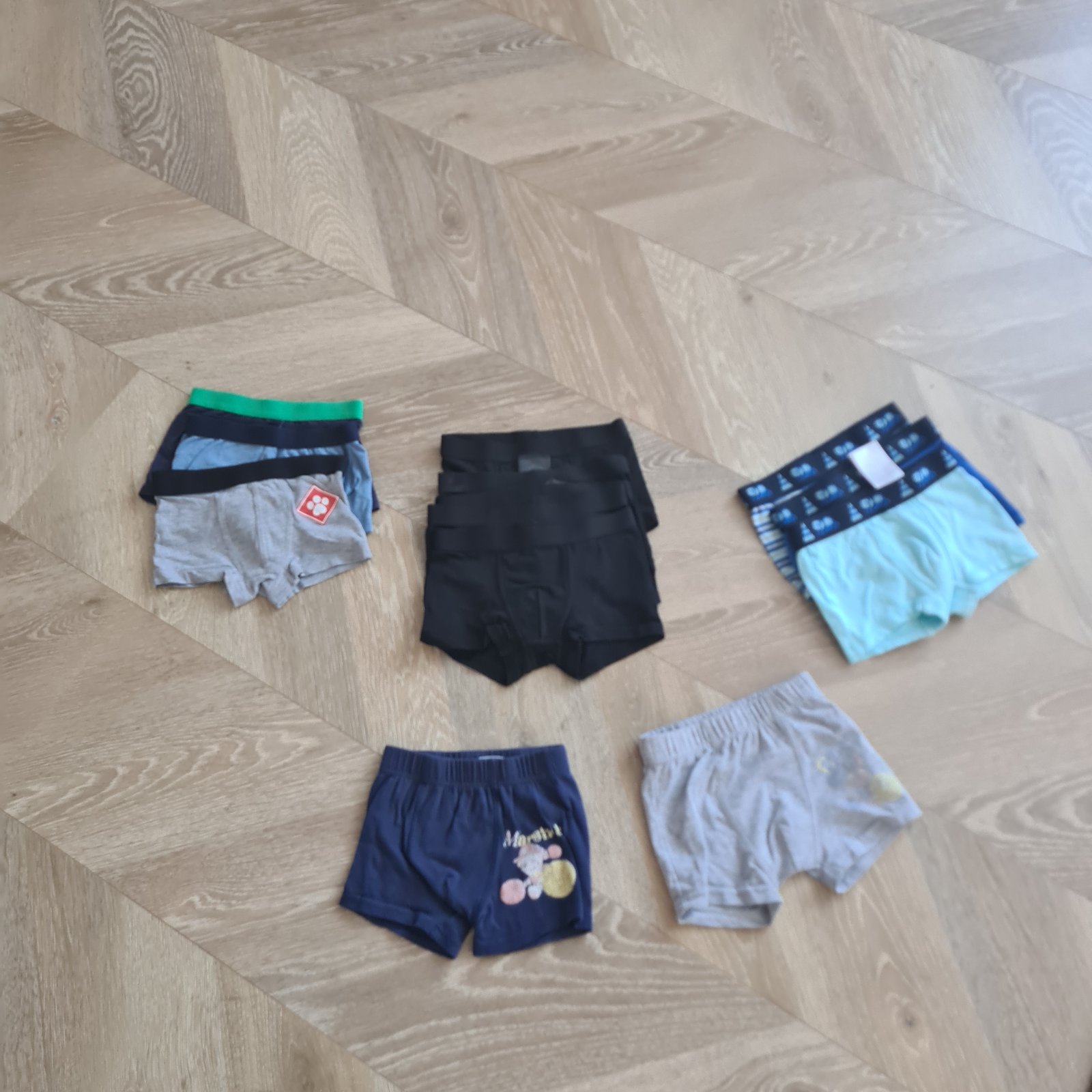 Posuniem krátko nosené slipy. Nosil ich ako svoje prvé. Je to číslo 98/104 z H&M. Všetky bez poslodenia. Cena je ako za set a bez poštovného.
