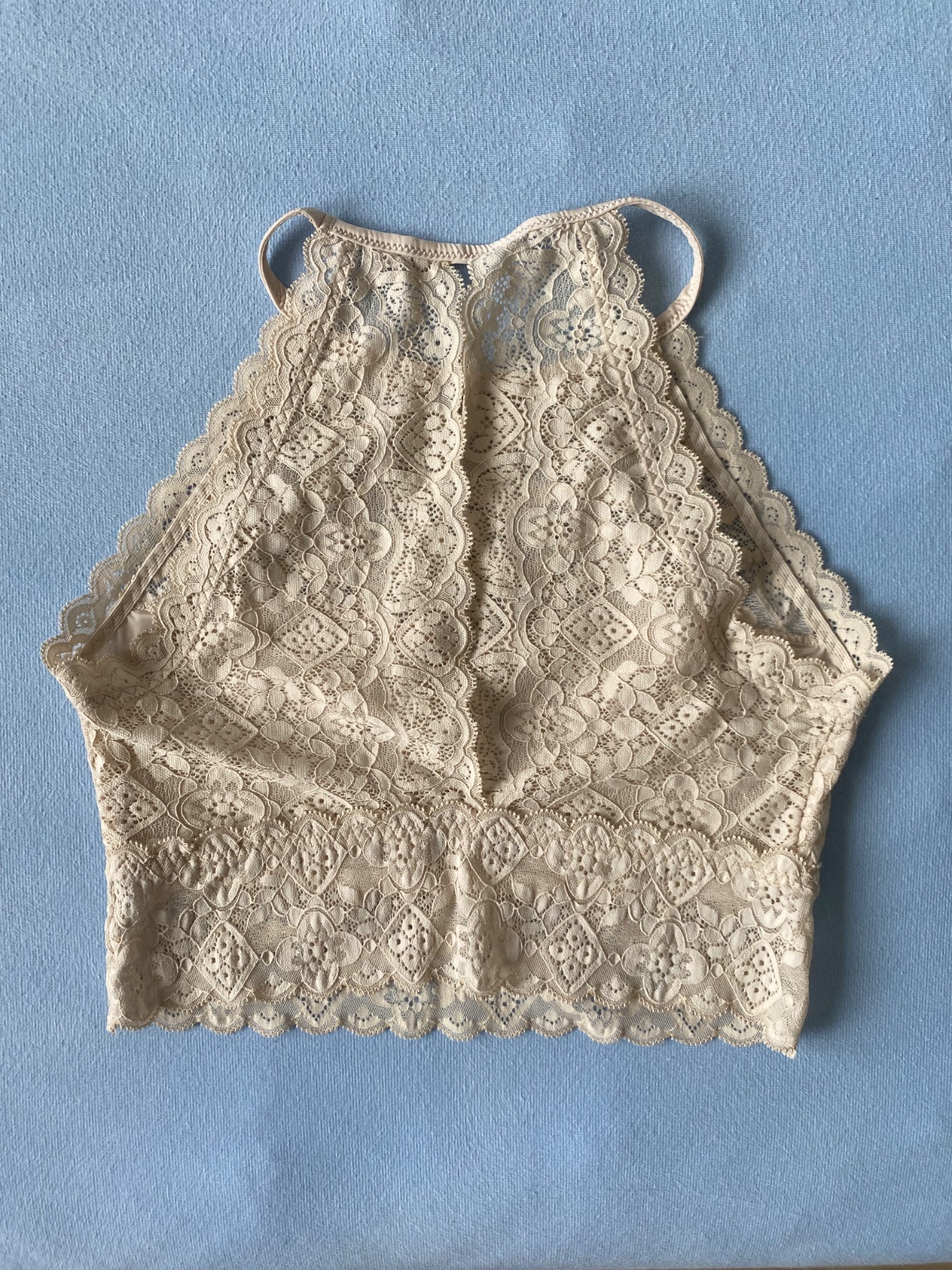 Ako nový, bez poškodení. Oblečený raz. Je z elastickej čipky a veľmi pohodlný, netlačí. 15€ + 3,4€ Packeta.