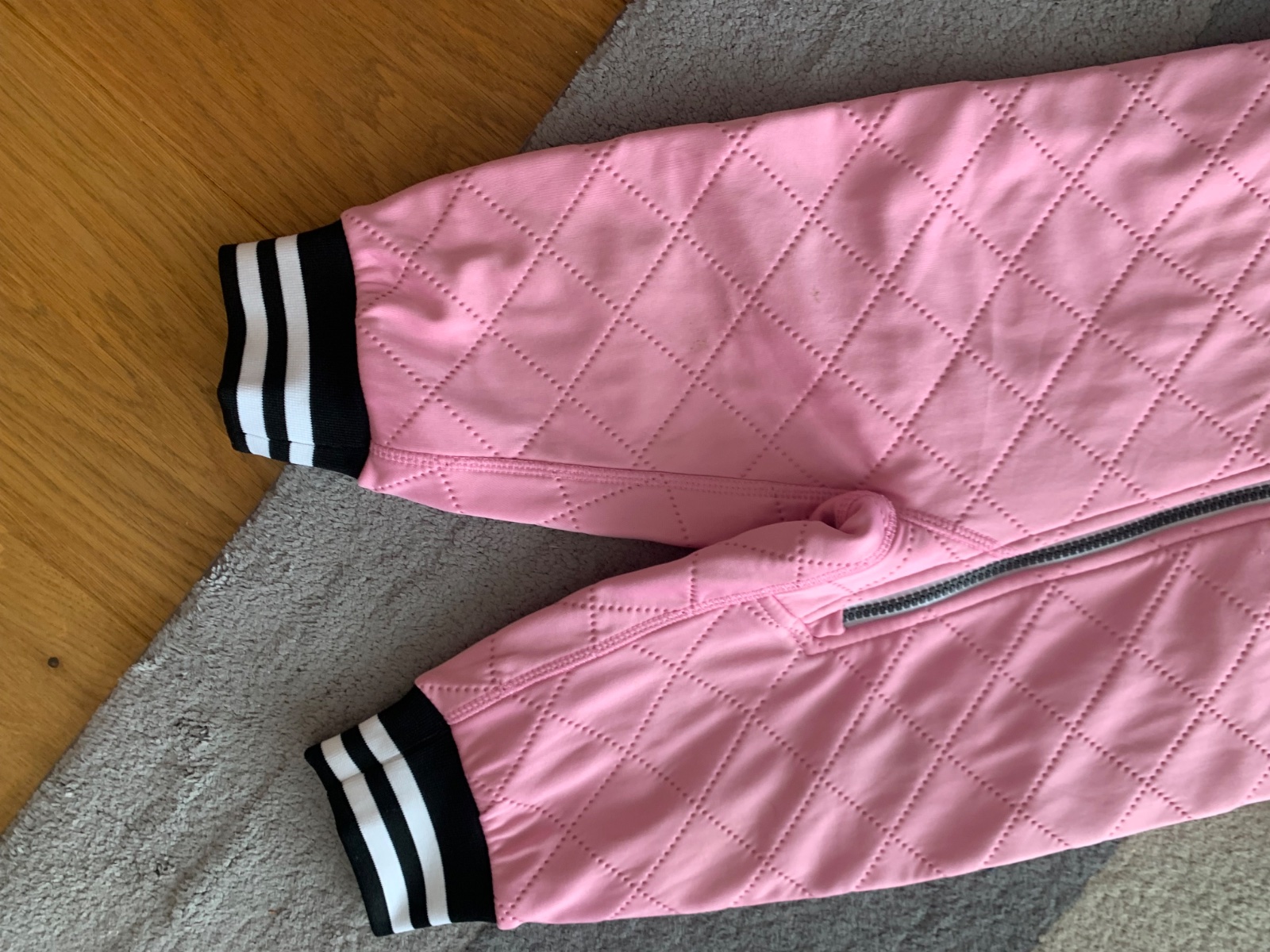 tenká prešívaná kombinéza na prechodné obdobie, sedí na 86 a 92, aj keď bola nosená minimalne má mini fľak od trávy na kolene a ešte trichu vyššie, zohľadňujem v cene