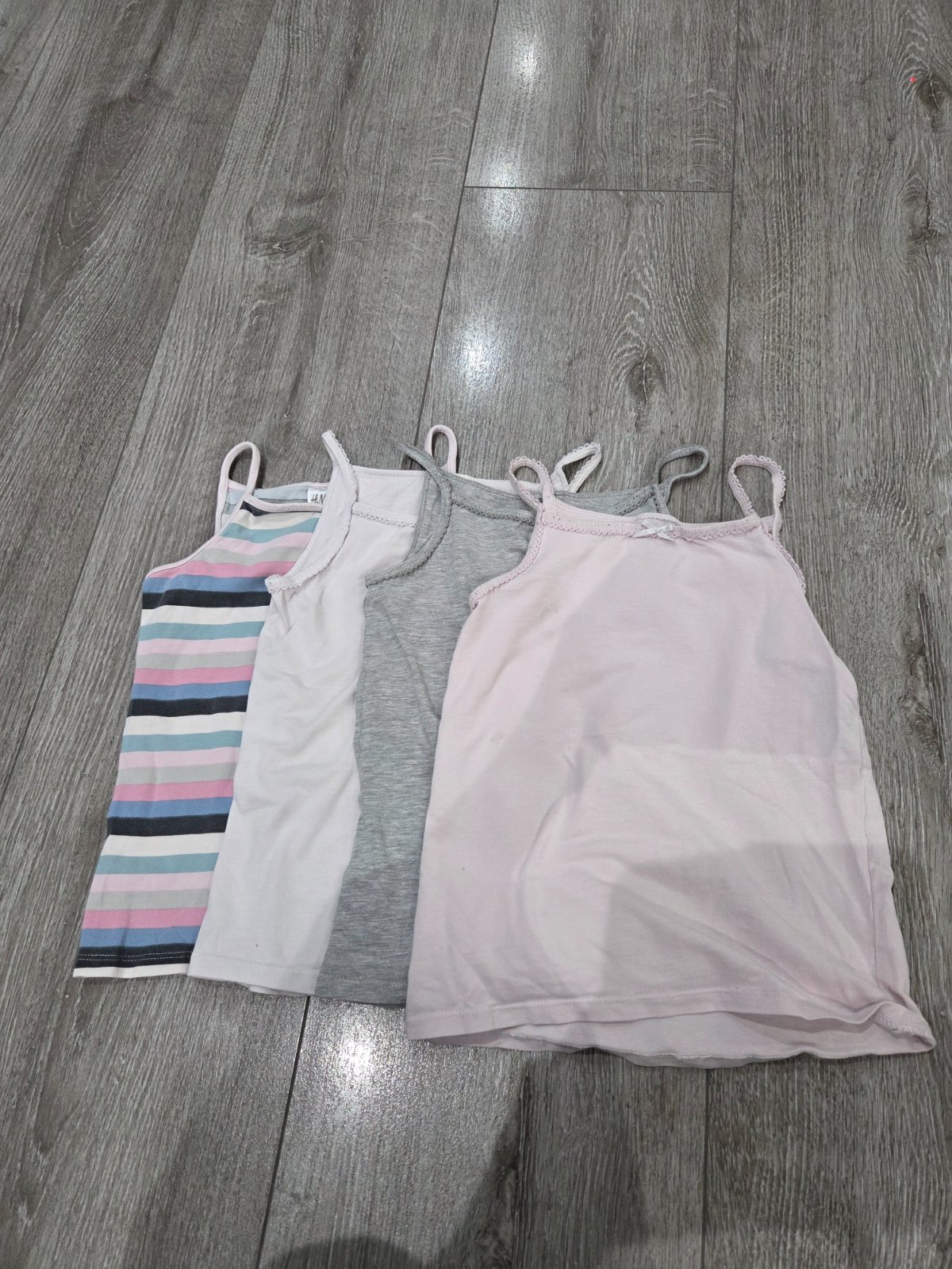Ponúkam na predaj pekne bavlnené tielka pre dievčatko. Nosené na striedačku s mnohými inými. Príjemná bavlna, bez akýchkoľvek poškodení. Nezasednute. Veľkosť tak 128-134. Cena 4 eura.